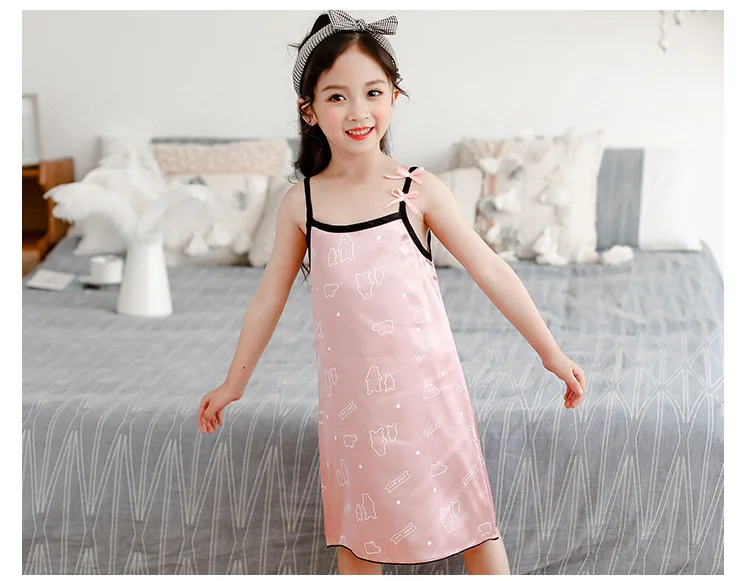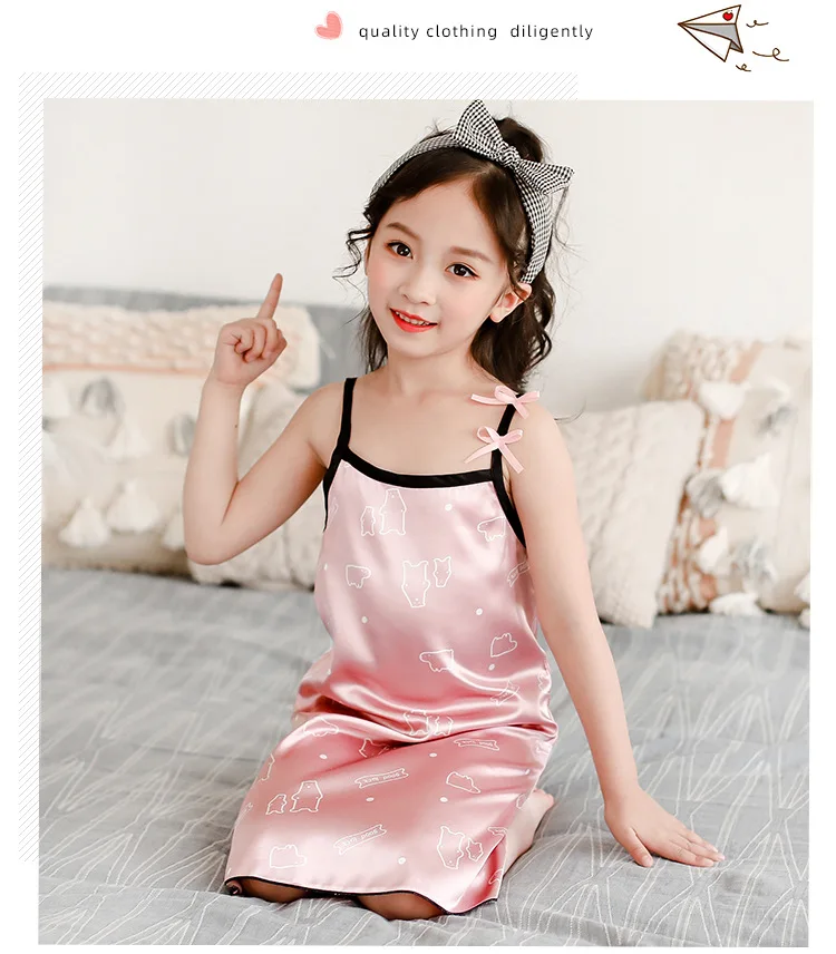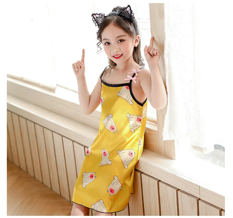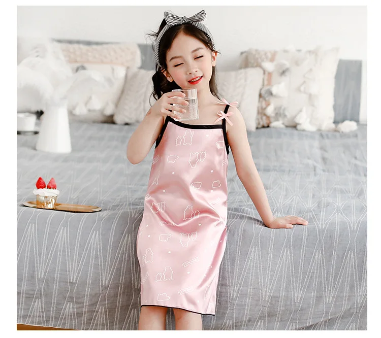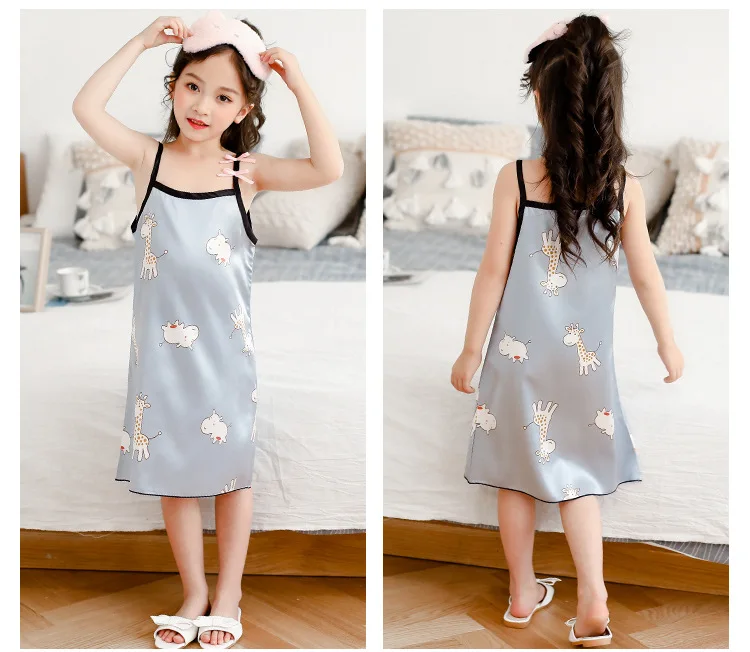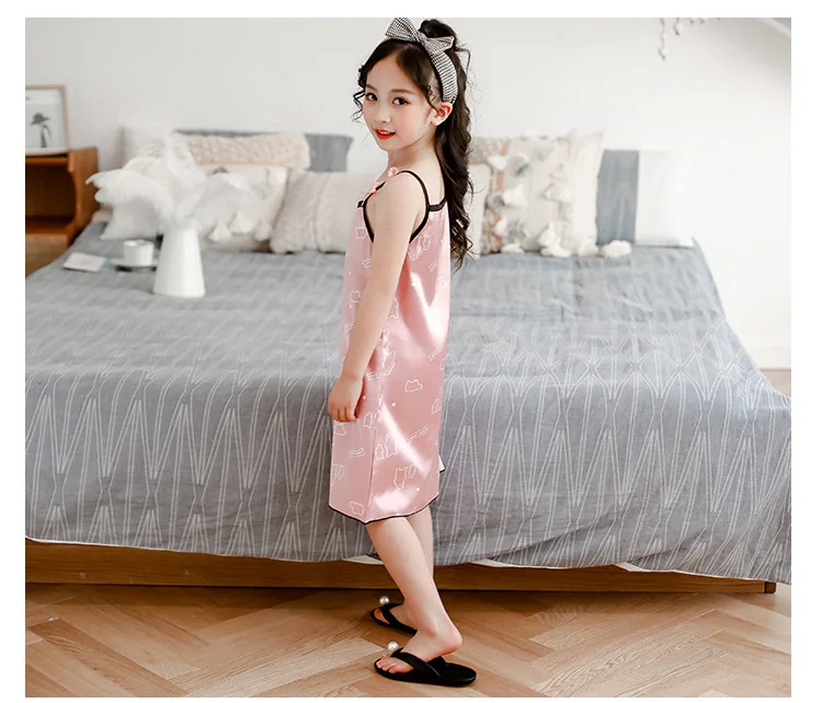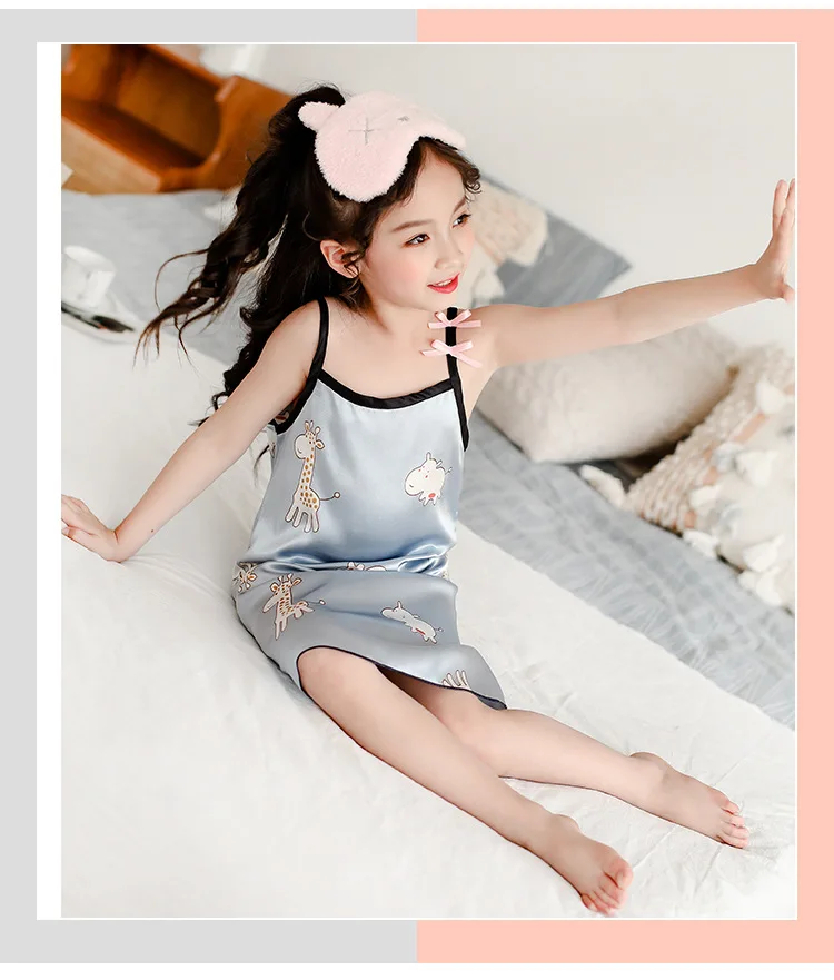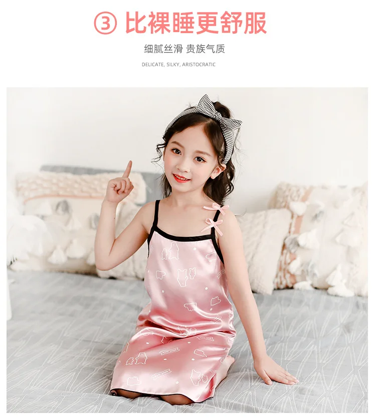 Новинка лета 2020, Детская шелковая атласная мягкая ночная рубашка ...