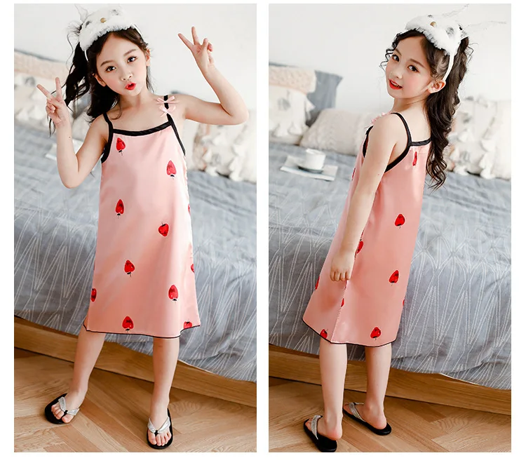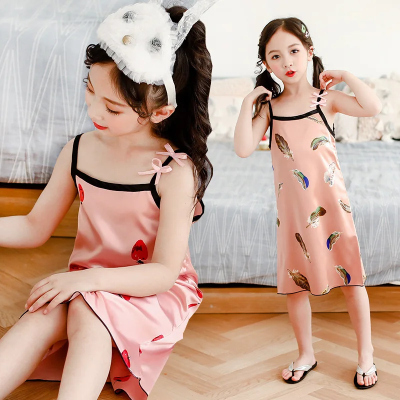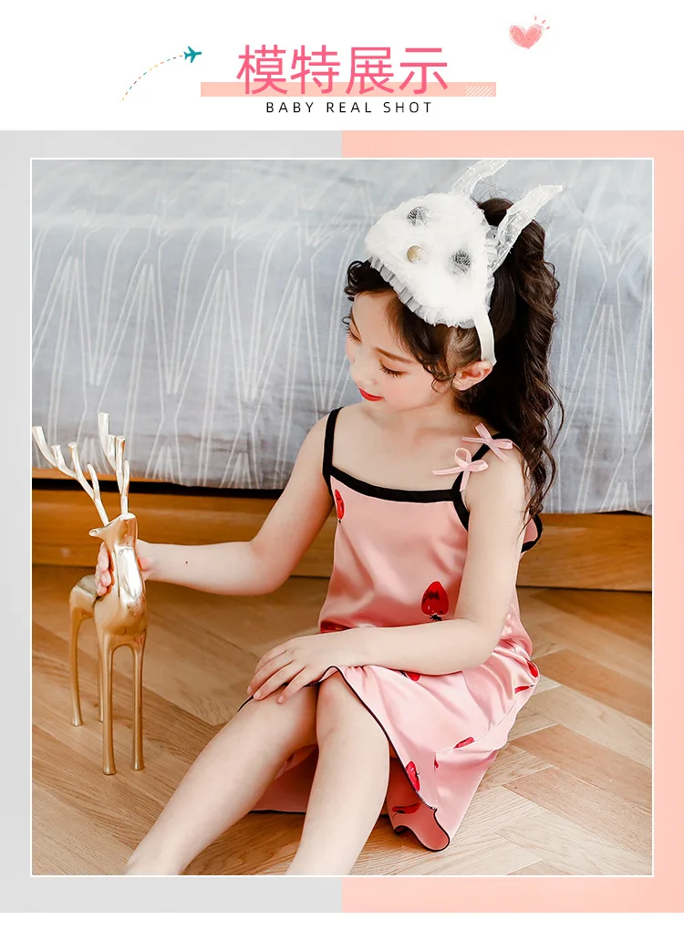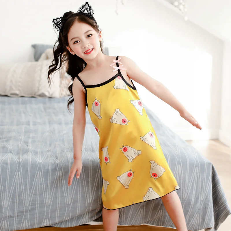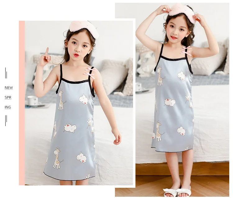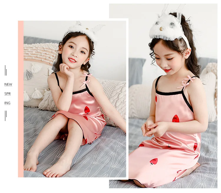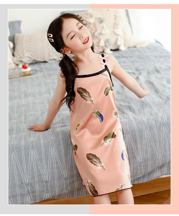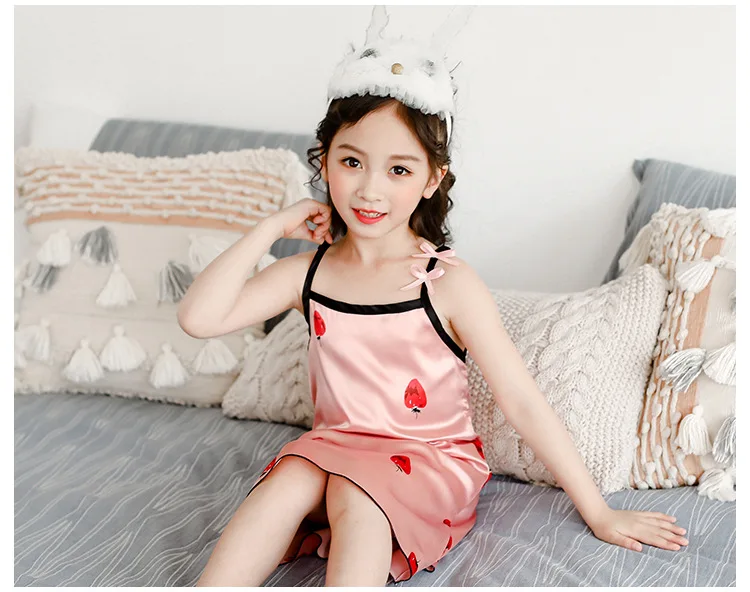 Новинка лета 2020, Детская шелковая атласная мягкая ночная рубашка ...