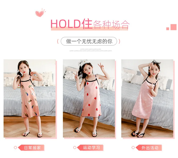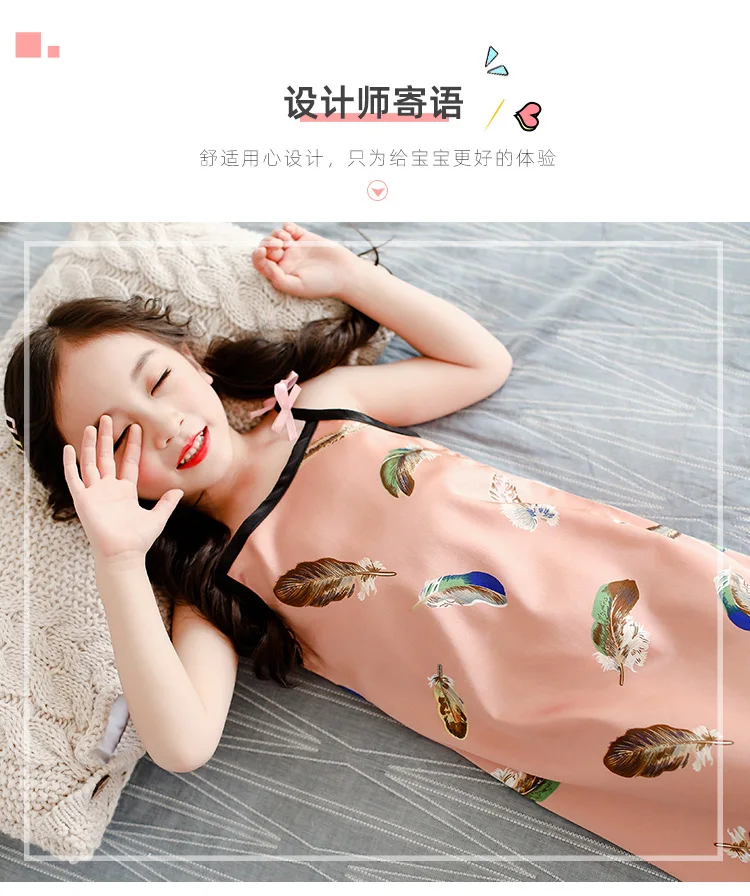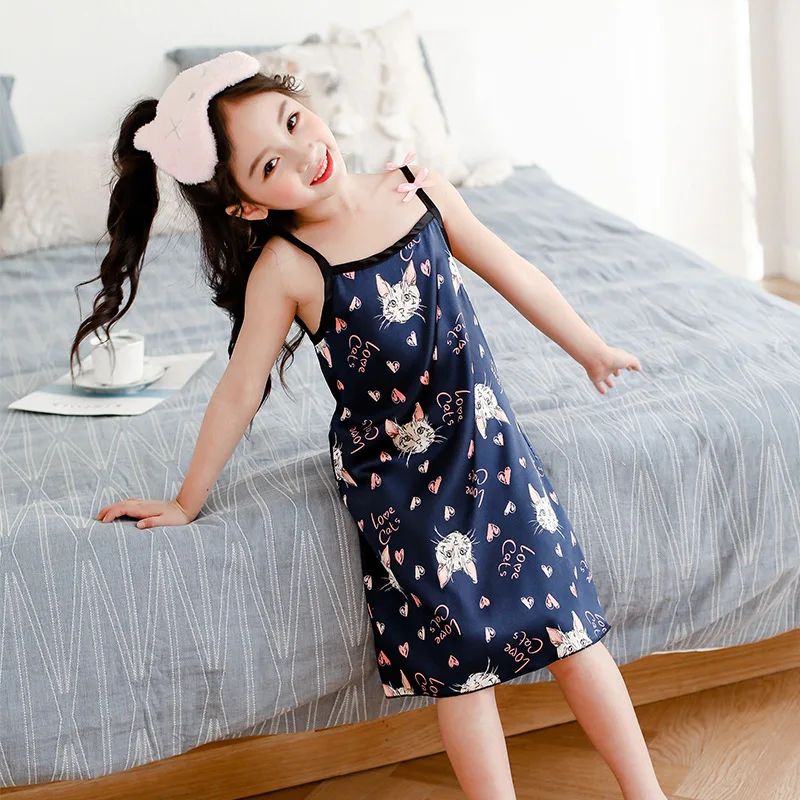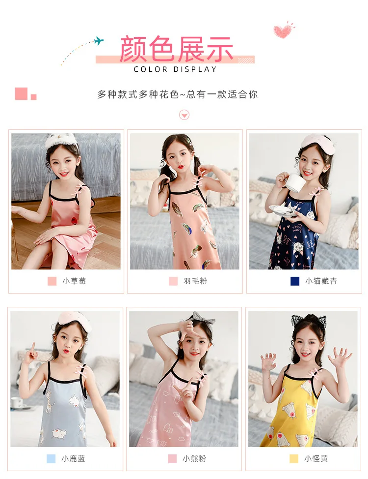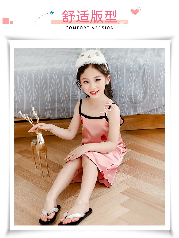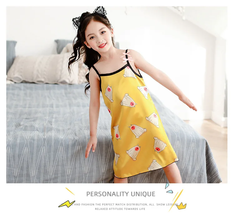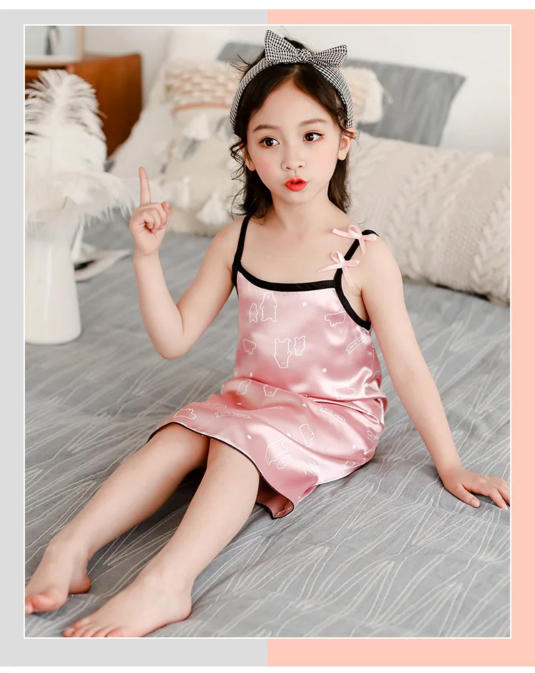 Новинка лета 2020, Детская шелковая атласная мягкая ночная рубашка ...