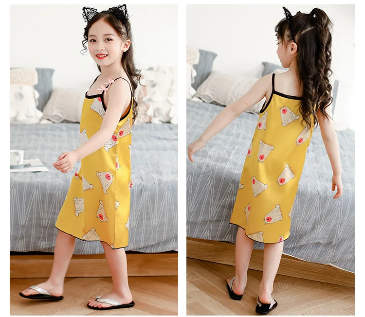 2020 платье для девочек, шелковые пижамы, одежда для девочек, ночные рубашки, одежда для сна для девочек, костюм для девочек, летняя пижама для девочек