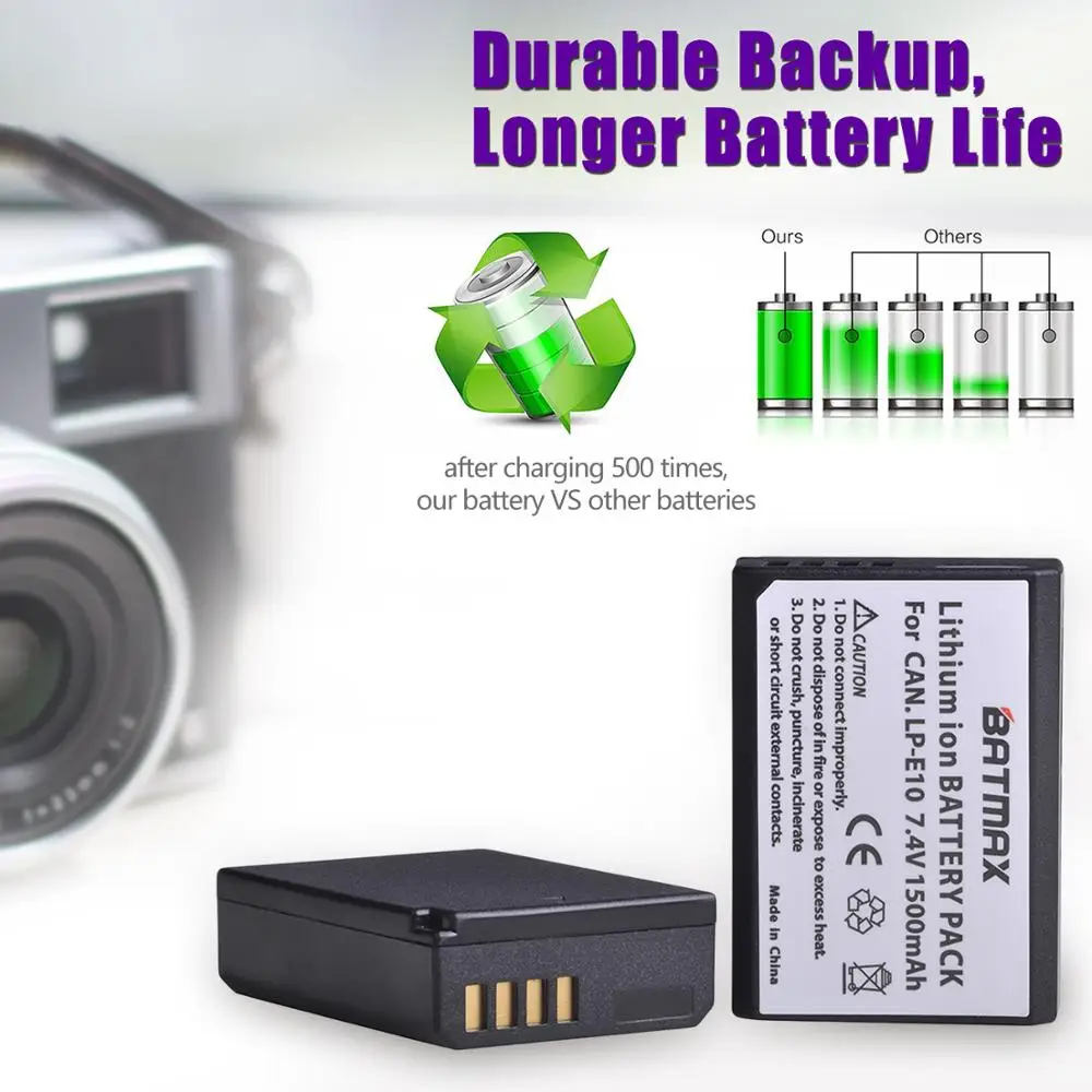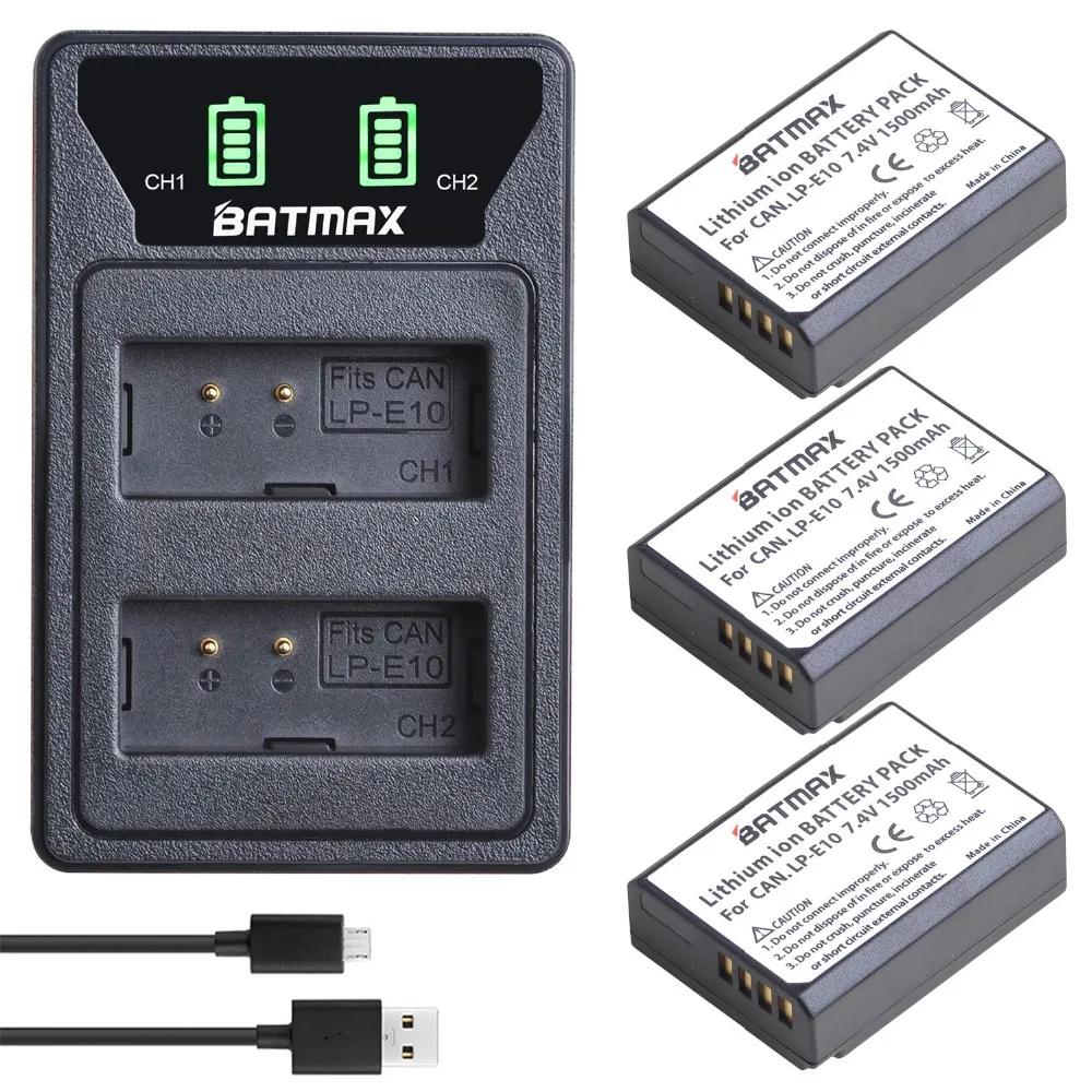 Аккумулятор Batmax LP-E10 LP E10 1500 мАч + двойное зарядное устройство со встроенным кабелем для Canon1100D 1200D 1300D 2000D Rebel T3 T5 T6