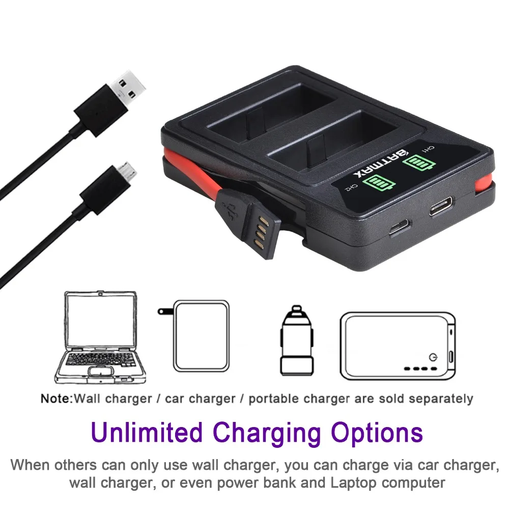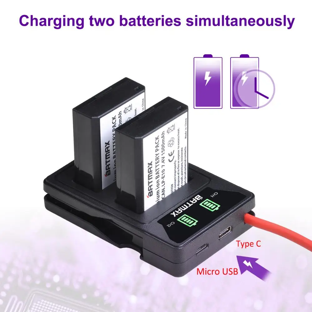 Batmax LP-E10 LP E10 LPE10 аккумулятор + светодиодный двойной зарядное устройство с портом типа C и встроенным кабелем для Canon1100D 1200D 1300D 2000D Rebel T3 T5 T6