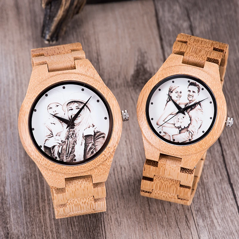 Мужские наручные часы BOBO BIRD с бесплатной печатью на фото, полностью бамбуковые часы для влюбленных пар