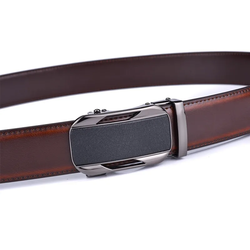 Максимальная прочность: ремешок нашего мужского храпового ремня изготовлен из натуральной кожи, а пряжка-из высококачественной тяжелой стали, мягкой и прочной, прочной и устойчивой к трению.