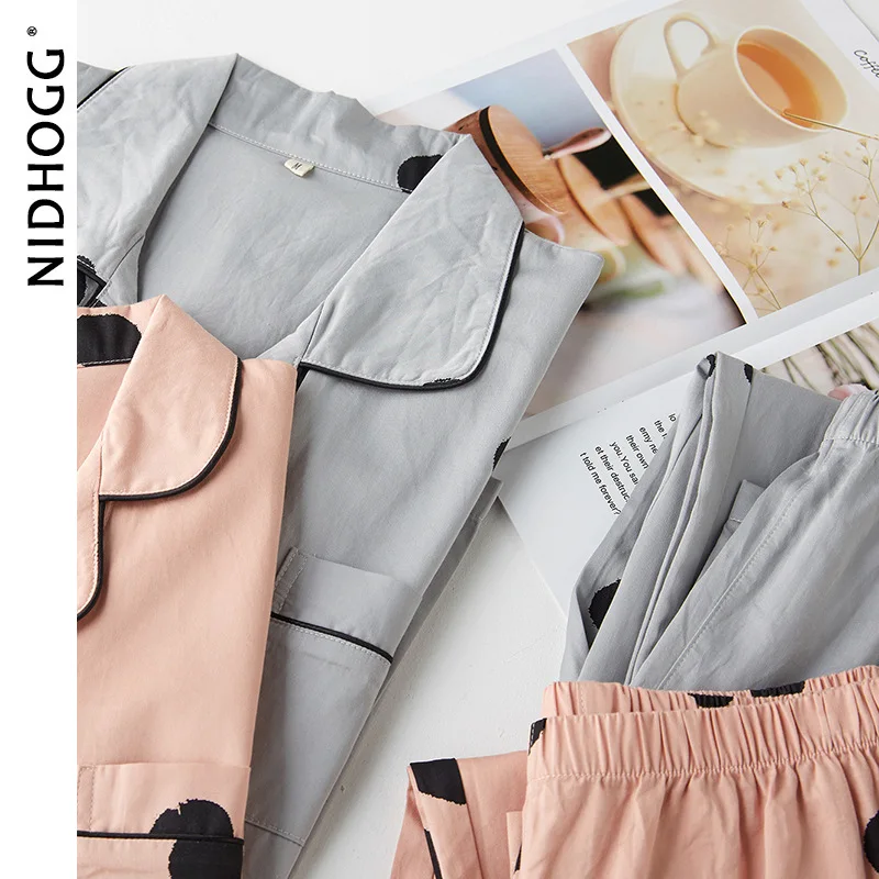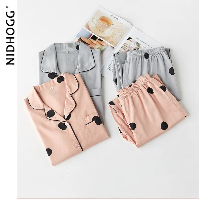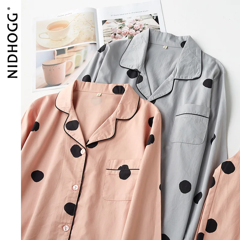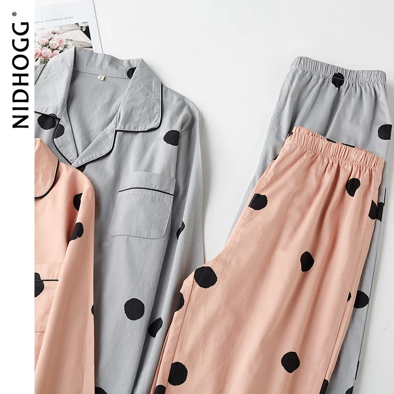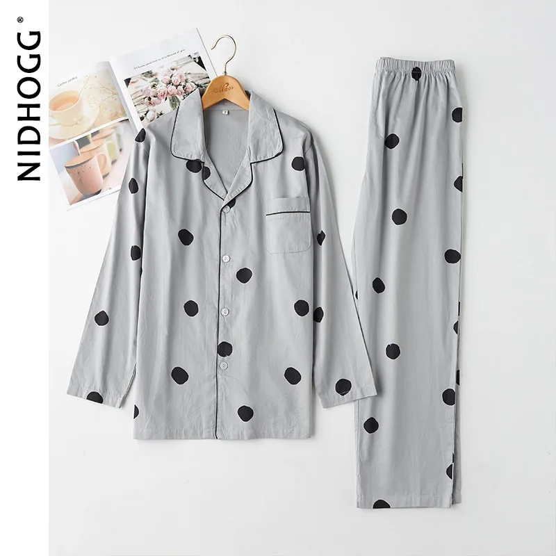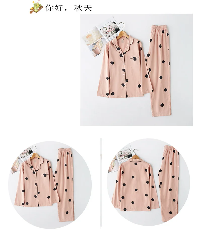Осенняя тонкая атласная Хлопковая пижама в горошек с длинными рукавами, одежда для сна для пар, одежда для дома для женщин и мужчин, домашняя одежда, 2 предмета