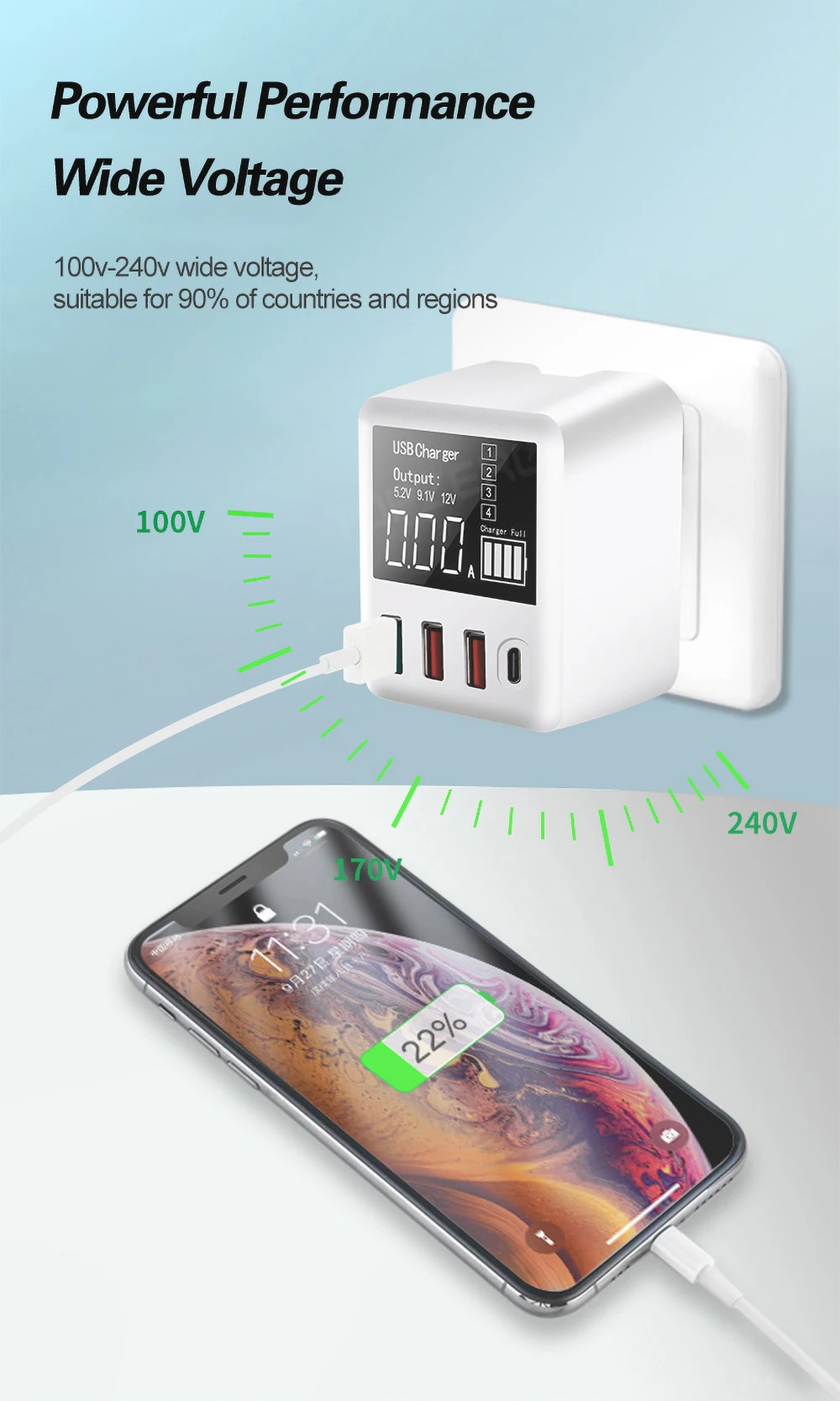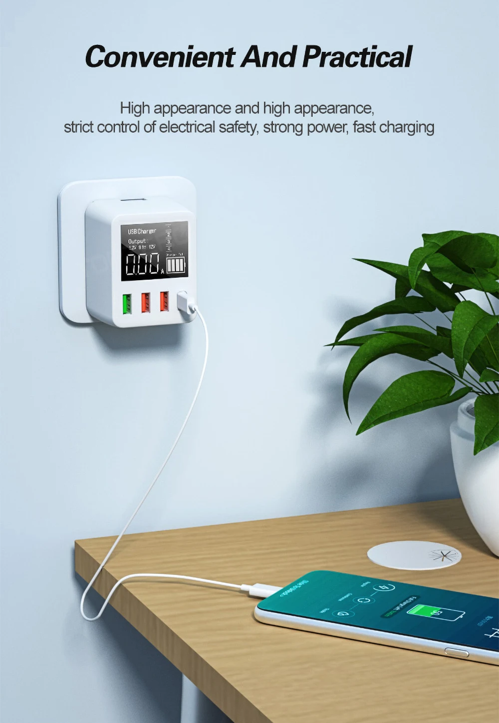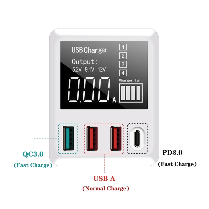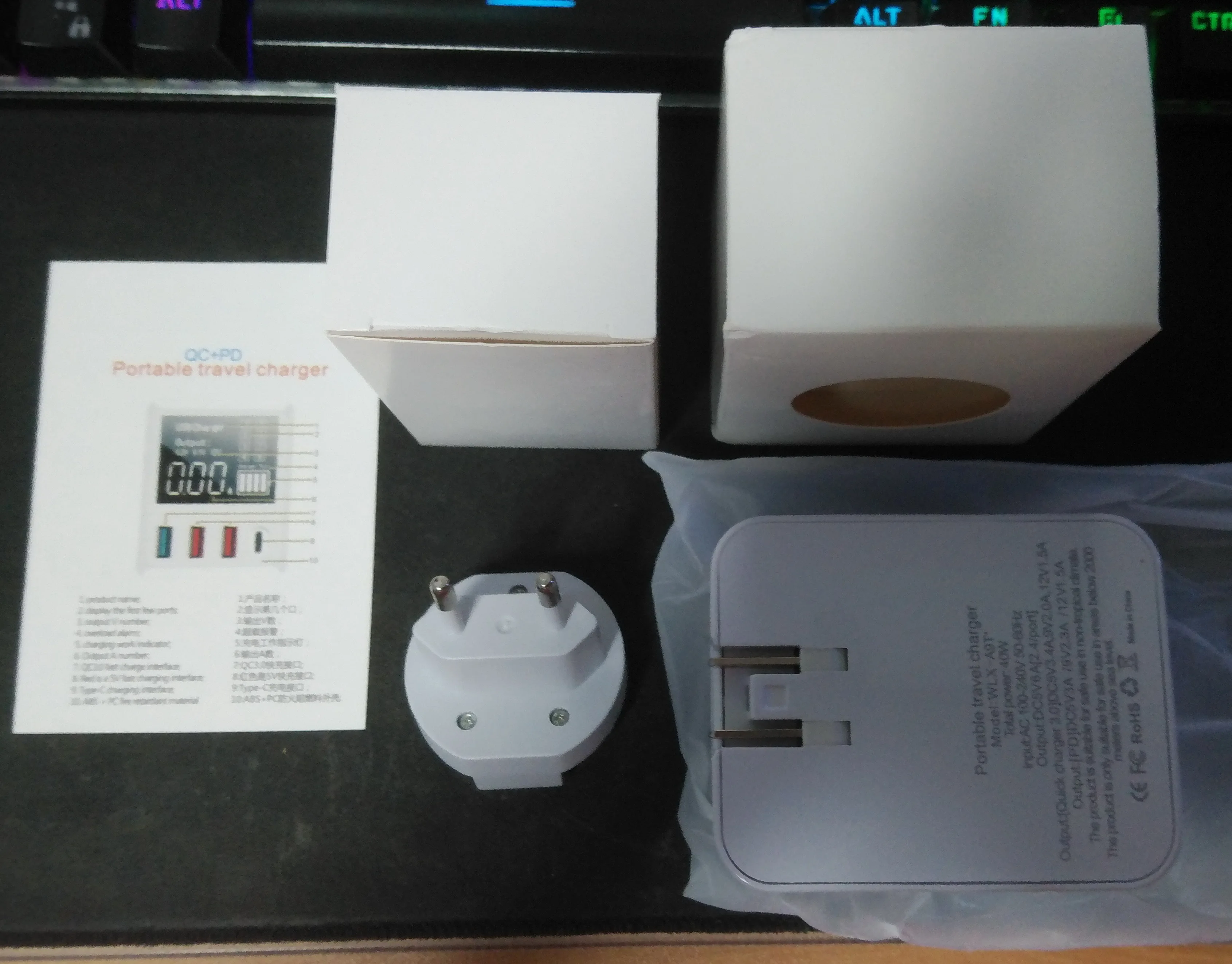 Доставка 20 дней. Трек отслеживался на всём протяжении пути. Упакован в почтовый пакет-пупырку, сама упаковка как у хорошего брендового девайса, коробочки-в коробочках, пакетики, книжечка. Хороший пластик и сборка, надеюсь и начинка качественная. Выглядит здорово. Всё работает, ток показывает, поочерёдно переключая по портам, функция быстрой зарядки работает отлично. Покупкой доволен. Продавца рекомендую.