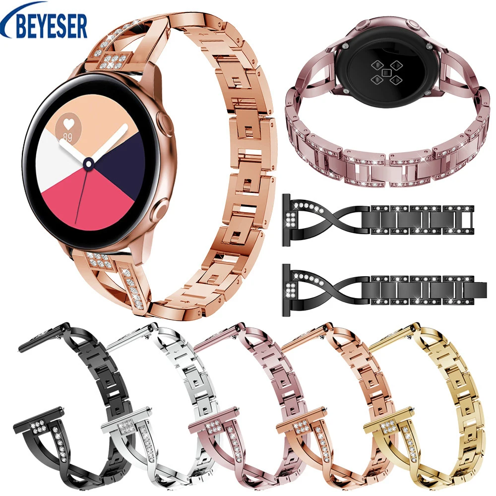 Ремешок для часов Samsung S2, со стразами, из нержавеющей стали, 20 мм