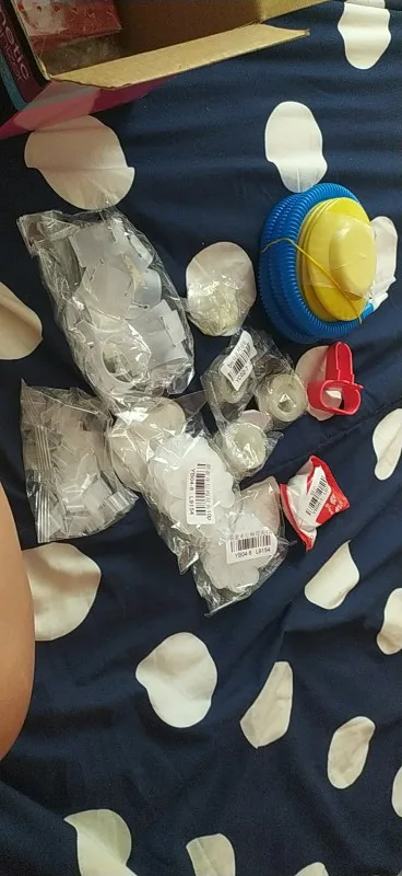 Насос красный! Но всего лишь две насадки для очень маленьких шариков! А как остальные надувать, Обычные ?
