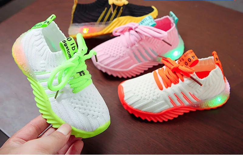Детская спортивная обувь; Сезон весна; Светящаяся модная дышащая обувь для мальчиков; Сетчатая обувь для девочек; Нескользящие кроссовки; Светильник; Обувь для бега