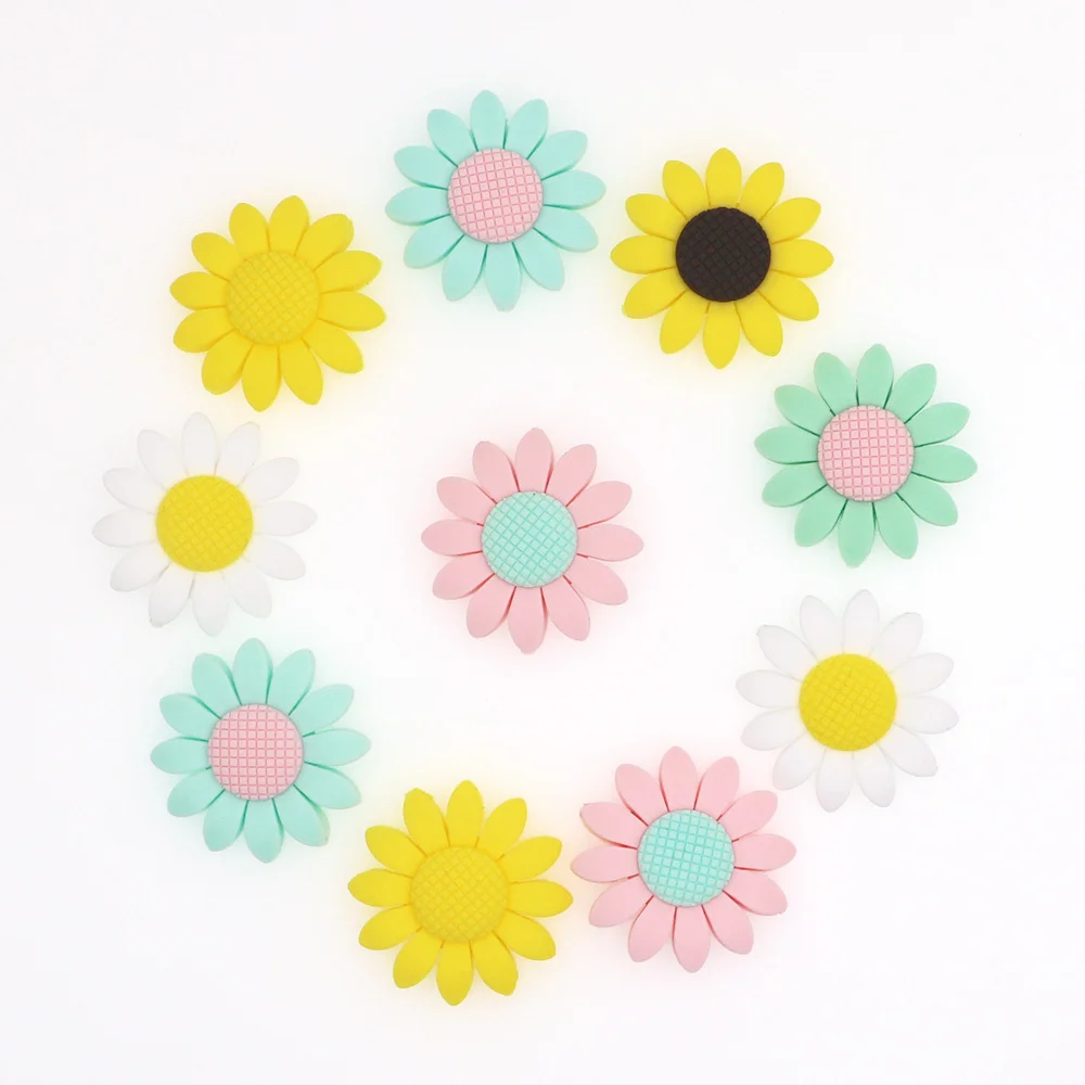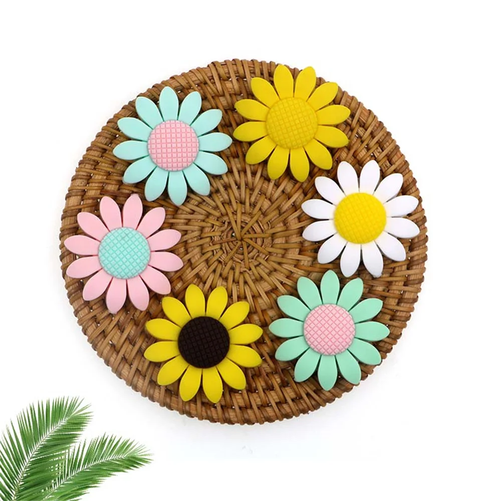 50 шт., силиконовые бусины в виде подсолнуха для прорезывания зубов