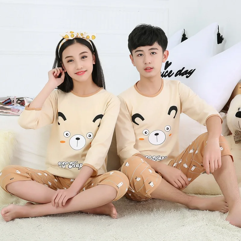 Детская Пижама с мультяшным принтом, футболка с коротким рукавом, топы и штаны для девочек, детская летняя Пижама, одежда для маленьких подростков, набор пижам для мальчиков
