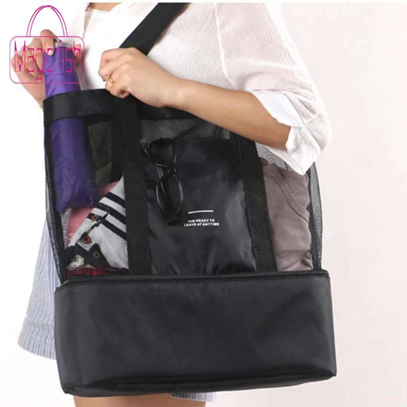 Женская большая пляжная сумка Magic Fish 2 в 1, сетчатая прозрачная сумка для пикника, двухслойная спортивная сумка для сохранения тепла, праздника, пляжа, парка