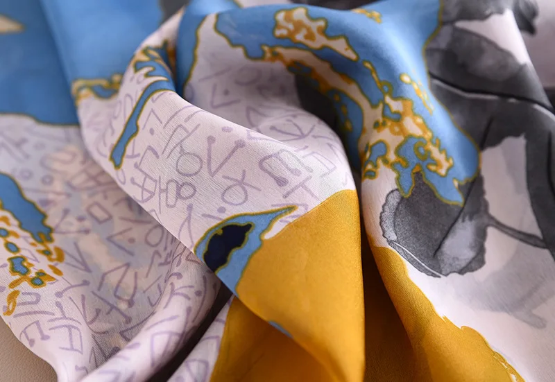 Шарф Шелковый женский, шаль из натурального шелка с рисунком граффити, с цветочным узором, Пашмина, летний шарф