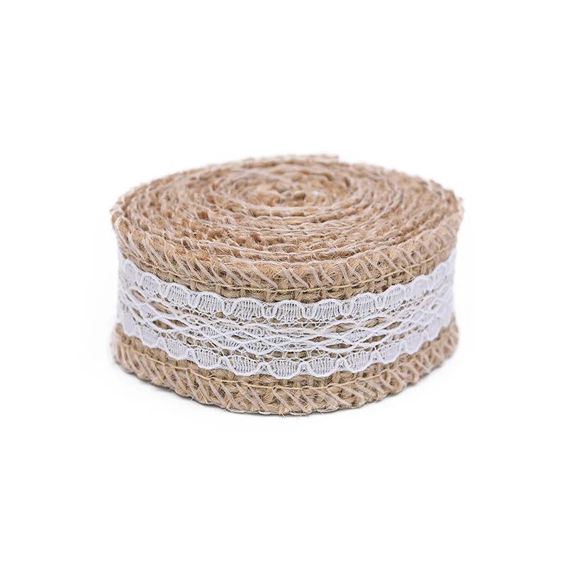 Лента Джутовая, 2 мкружево в рулоне, из натуральной джутовой ткани