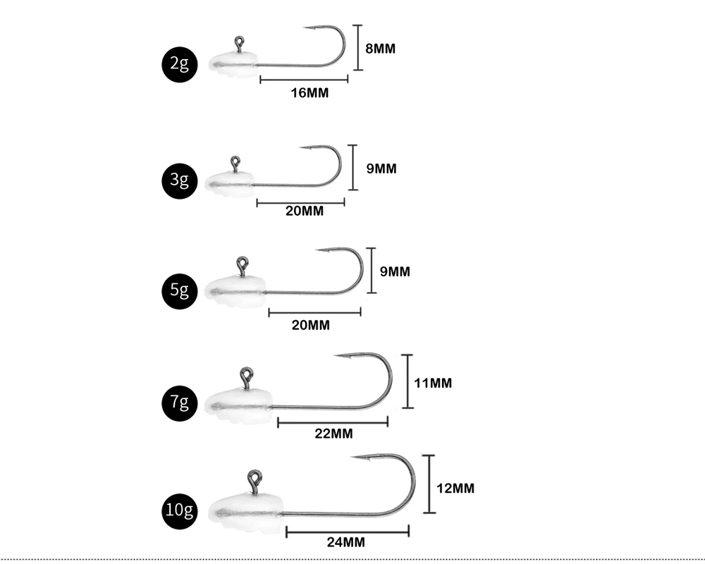 Крючок для мормышки JOHNCOO, 2 г, 3 г, 5g г, 7 г, 10 г, крючок для мормышки Мягкая приманка, червь, Вибрационный крючок, крючок для рыбы, 10 шт.