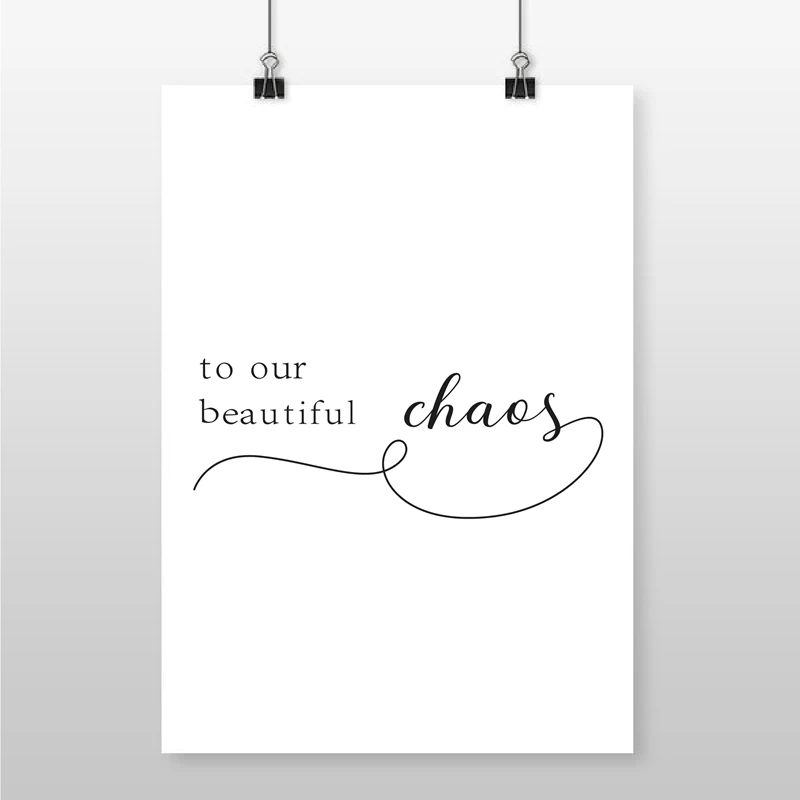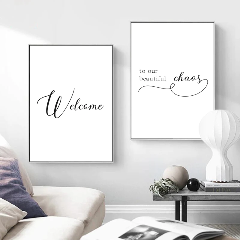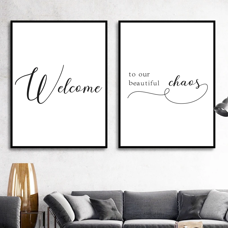 СЕМЕЙНЫЙ Знак входной двери, печать, добро пожаловать в наш красивый постер хаоса, черные белые картины на холсте, картина для гостиной, настенное искусство, Декор