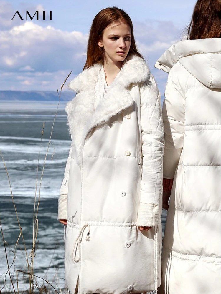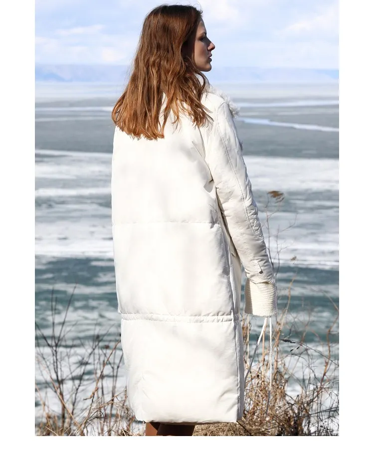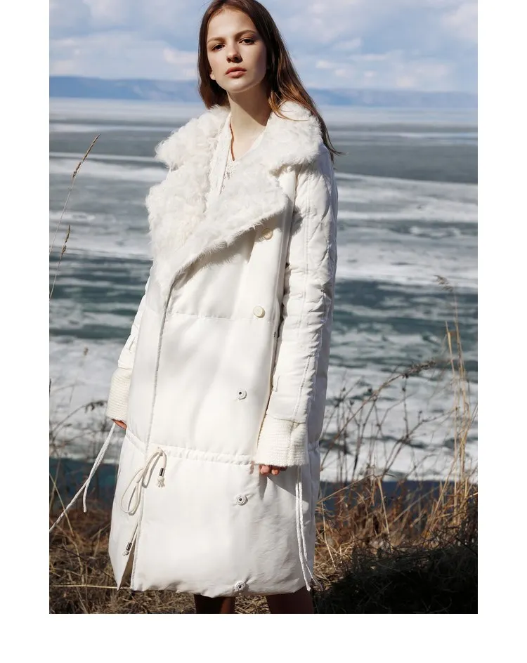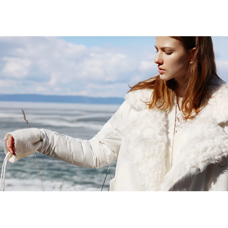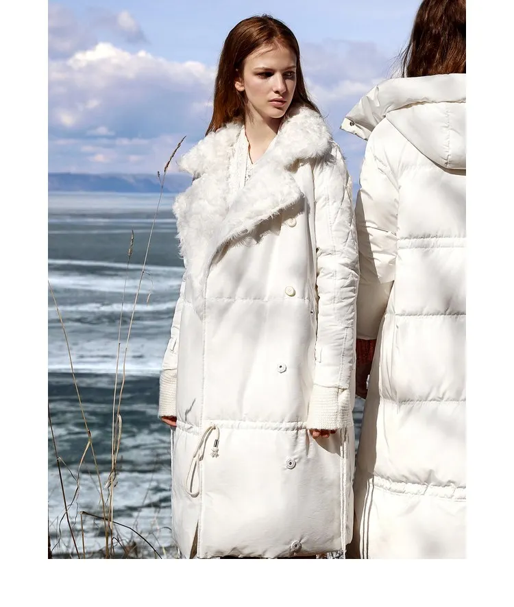 Куртка женская зимняя на белом утином пуху с лацканами, 11980077