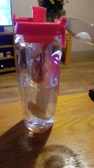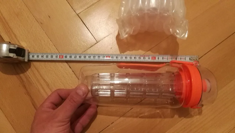 Посылку долго не отправляли, где-то дней 10 с момента заказа. Шла посылка 16 дней. Пришла хорошо упакованная. Яркий цвет розовый, как заявлено продавцом. Удобная бутылка, по утрам режу или лимо, или огурец, или мяту и целый день вкусная водичка.
