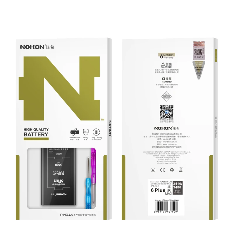 Номер моделиNohon battery For Apple iPhone 6 Plus 6P 6Plus 3410-3480mAh