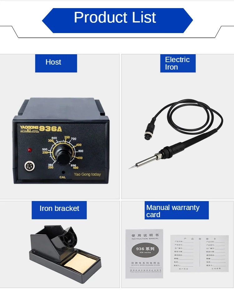 Электрический паяльник YAOGONG 936A с антистатическим нагревом и высокой мощностью
