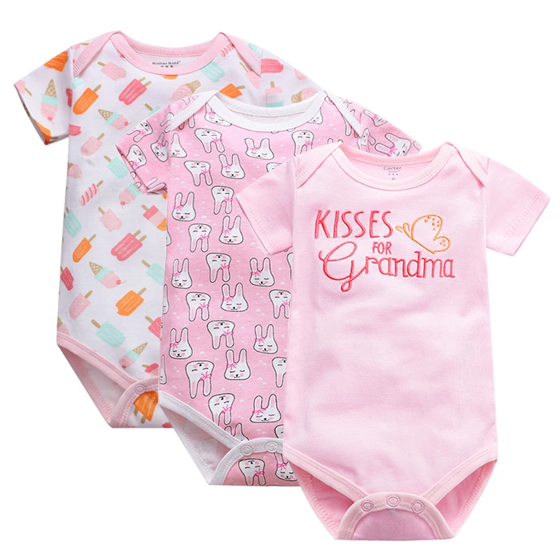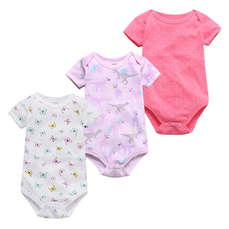 Боди с короткими рукавами для мальчиков и девочек, 3 предмета, летнее нижнее белье, комбинезон с модным принтом, комплект одежды для малышей 3, 6, 12, 18, 24 мес.