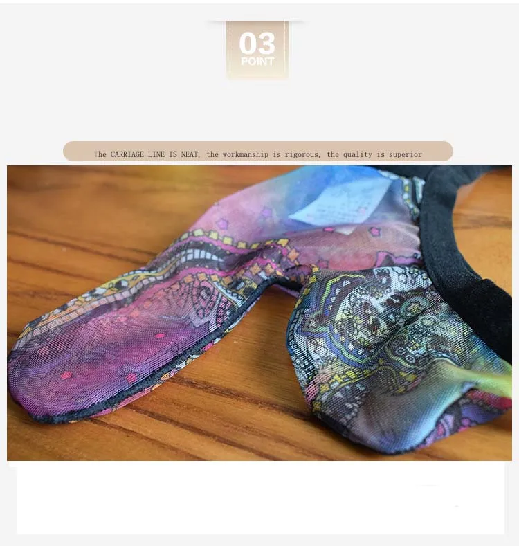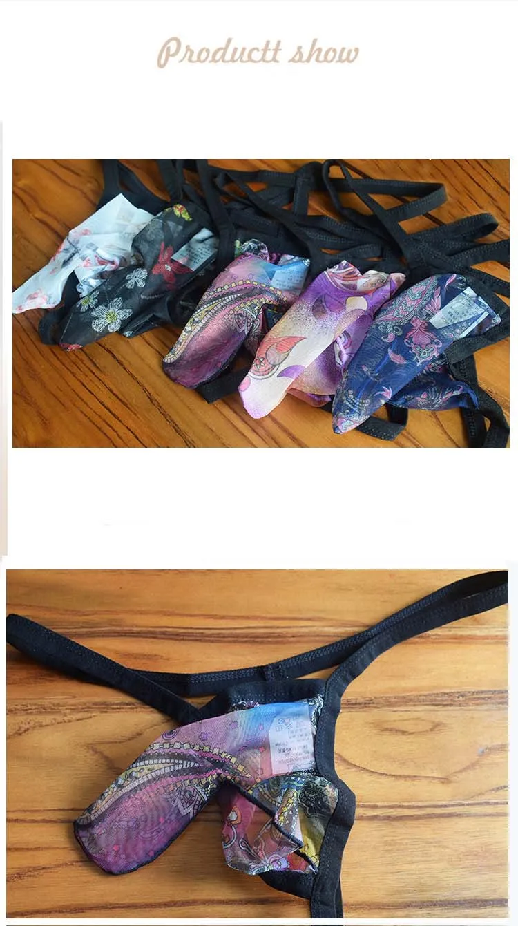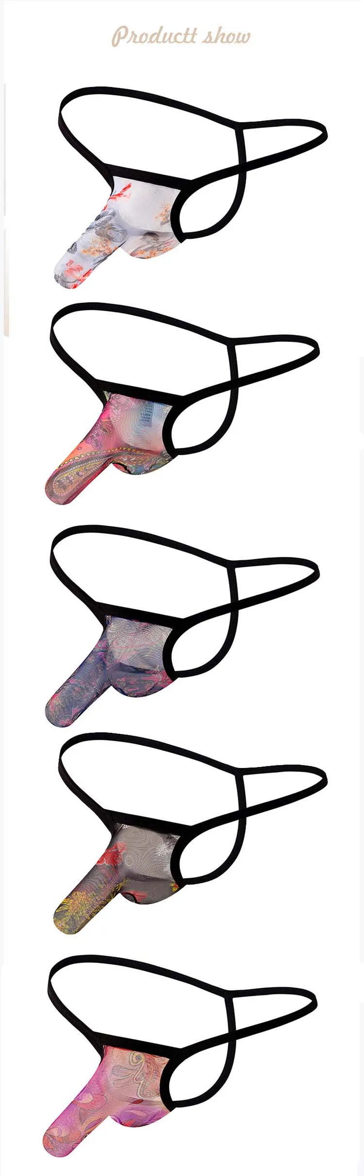 Мужские трусы стринги с принтом, черные трусы-бикини в богемном стиле, просвечивающие трусы с Т-образным вырезом сзади, сексуальное нижнее белье для мужчин, гей-трусы 2019