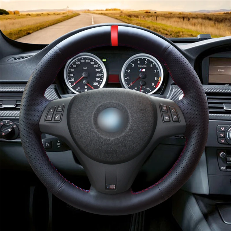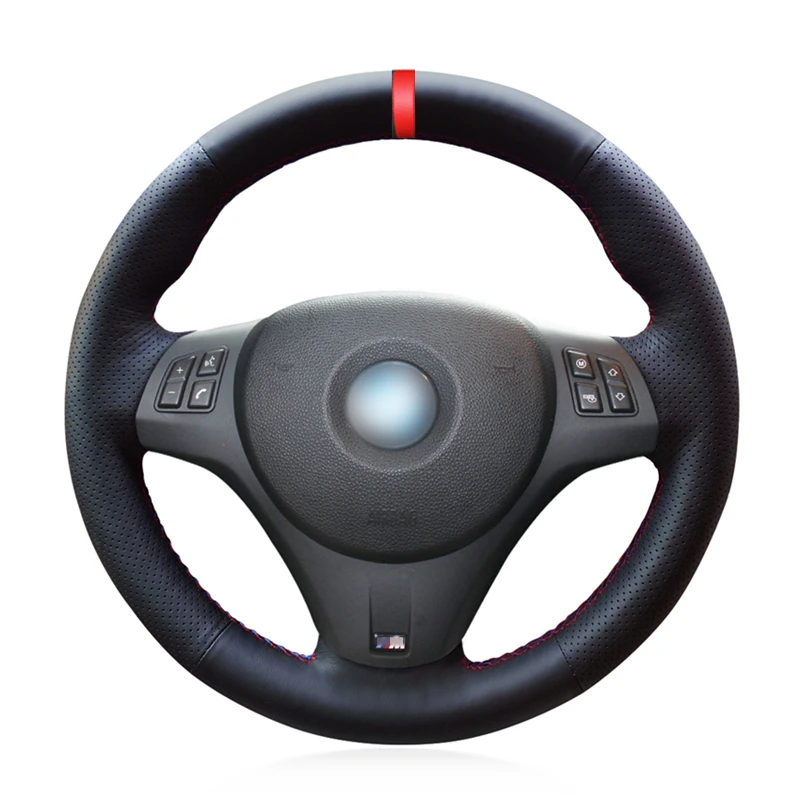Черная искусственная кожа PU красный маркер чехол рулевого колеса автомобиля для BMW M Sport M3 E90 E91 E92 E93 E87 E81 E82 E88 X1 E84