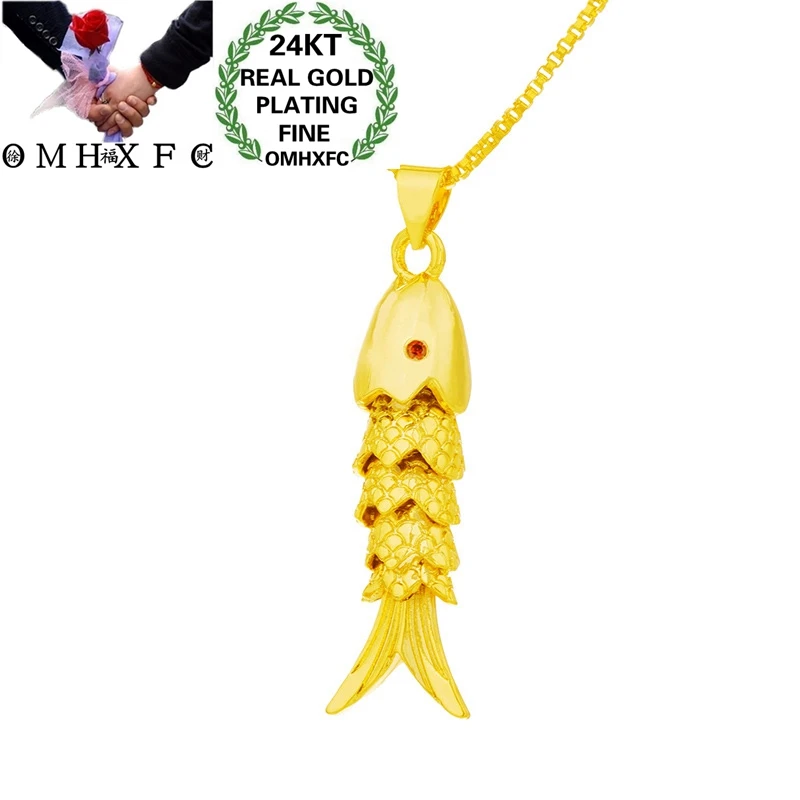 Ювелирные изделия OMHXFC оптом PN345, Европейская мода, изящный женский вечерние на день рождения, свадьбу, подвижный Карп 24 карата, золотой кулон