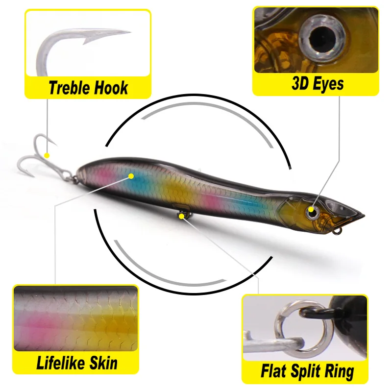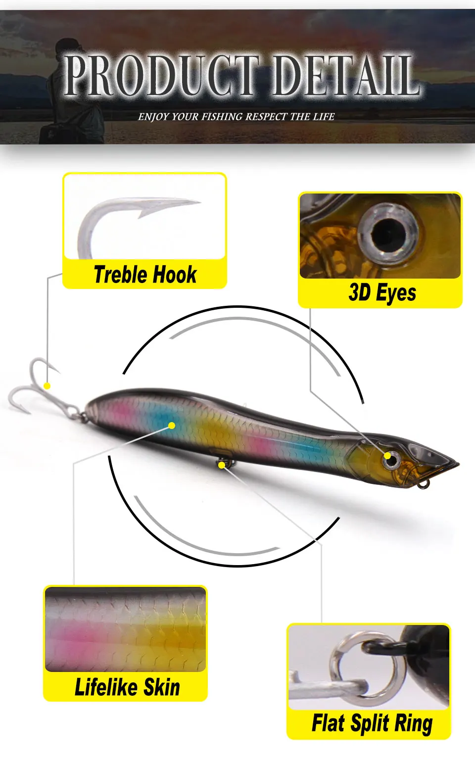 Битлепро PO09 Popper Topwater, 1 шт., 135 мм, 26 г, воблер со змеиной головой, искусственная бритья