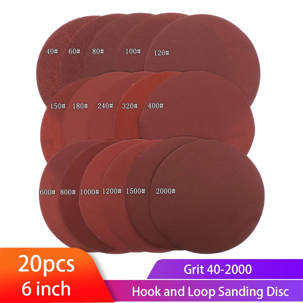 Самоклеящиеся шлифовальные диски, круглые красные листы наждачной бумаги 6 дюймов 150 мм, 40-2000 с липучкой, 20 шт.