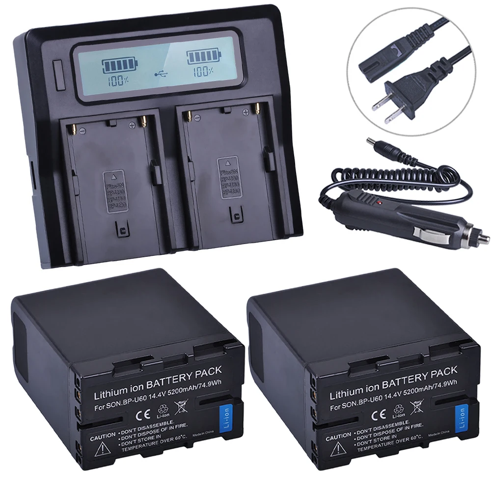 2x BPU60 BP U60 BP-U60 батарея + LCD двойная ультра быстрая штепсельная вилка автомобильного зарядного устройства для Sony PMW 300 EX1 EX1R EX160 EX260 EX280 F3 FS7 PHU-60K