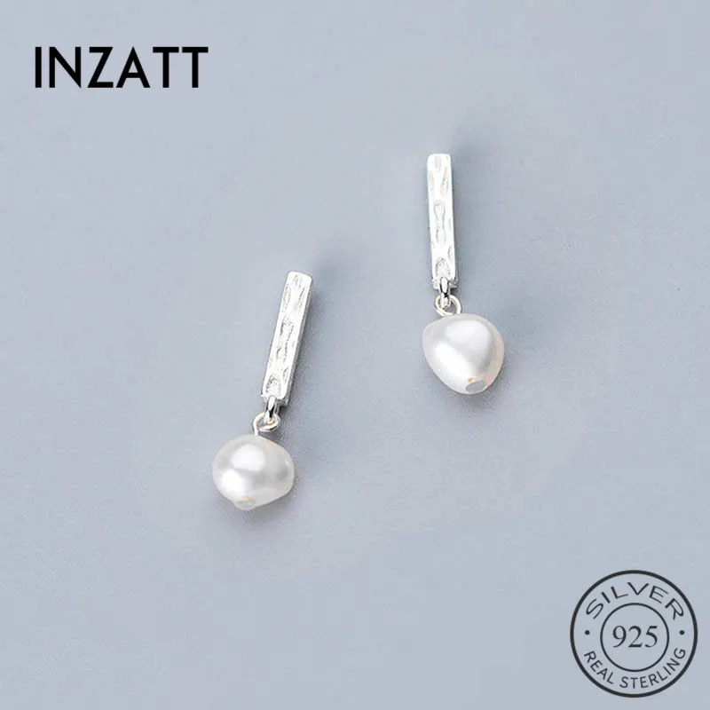 Серьги-гвоздики INZATT из настоящего стерлингового серебра 925 пробы женские, геометрический дизайн с жемчугом, изящные вечерние минималистичные аксессуары в подарок
