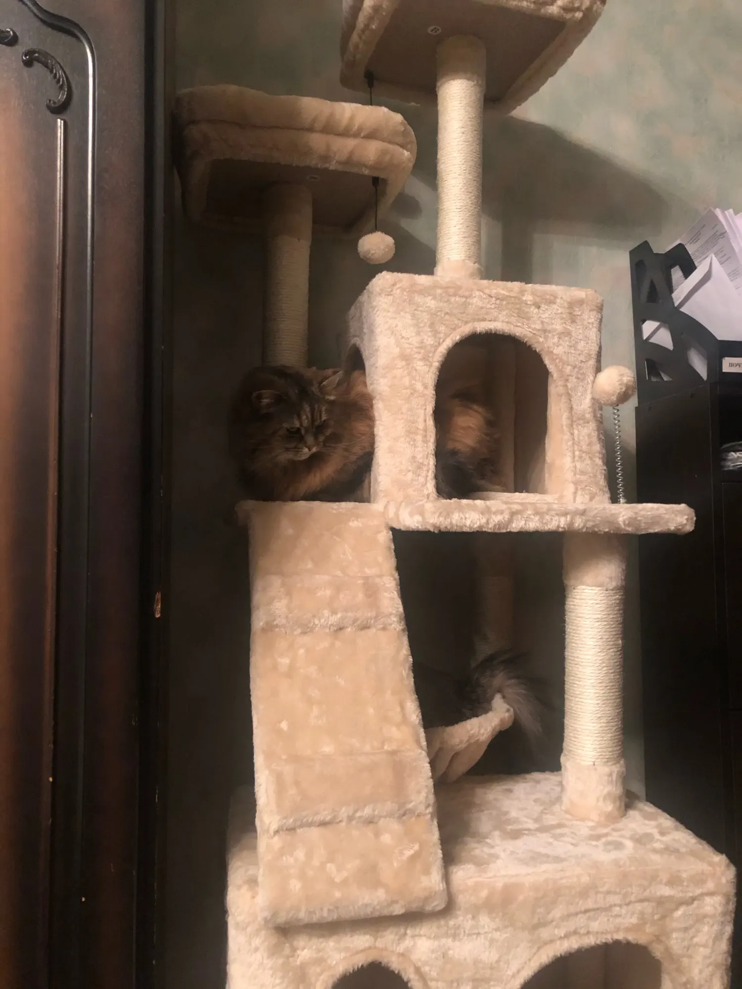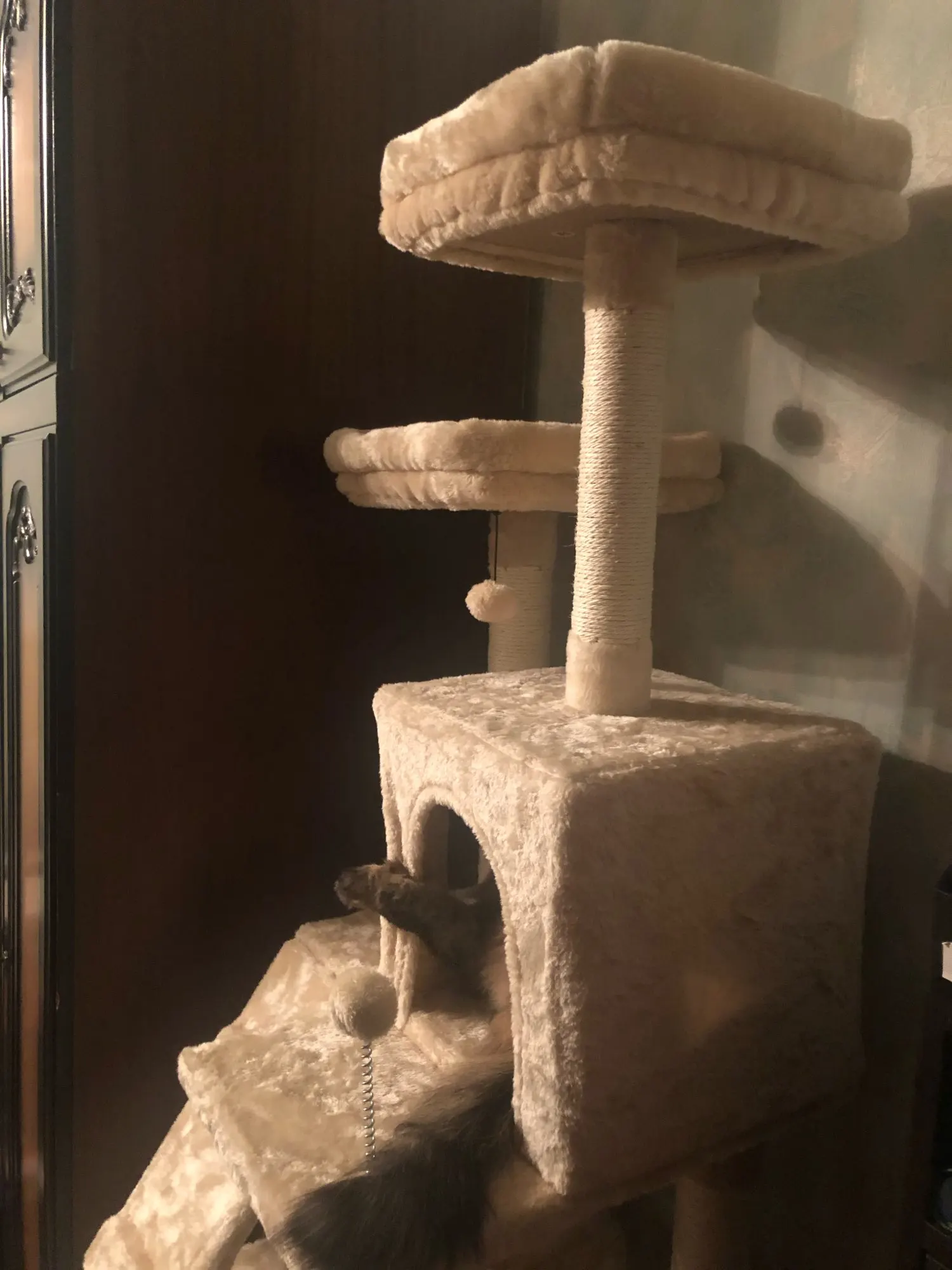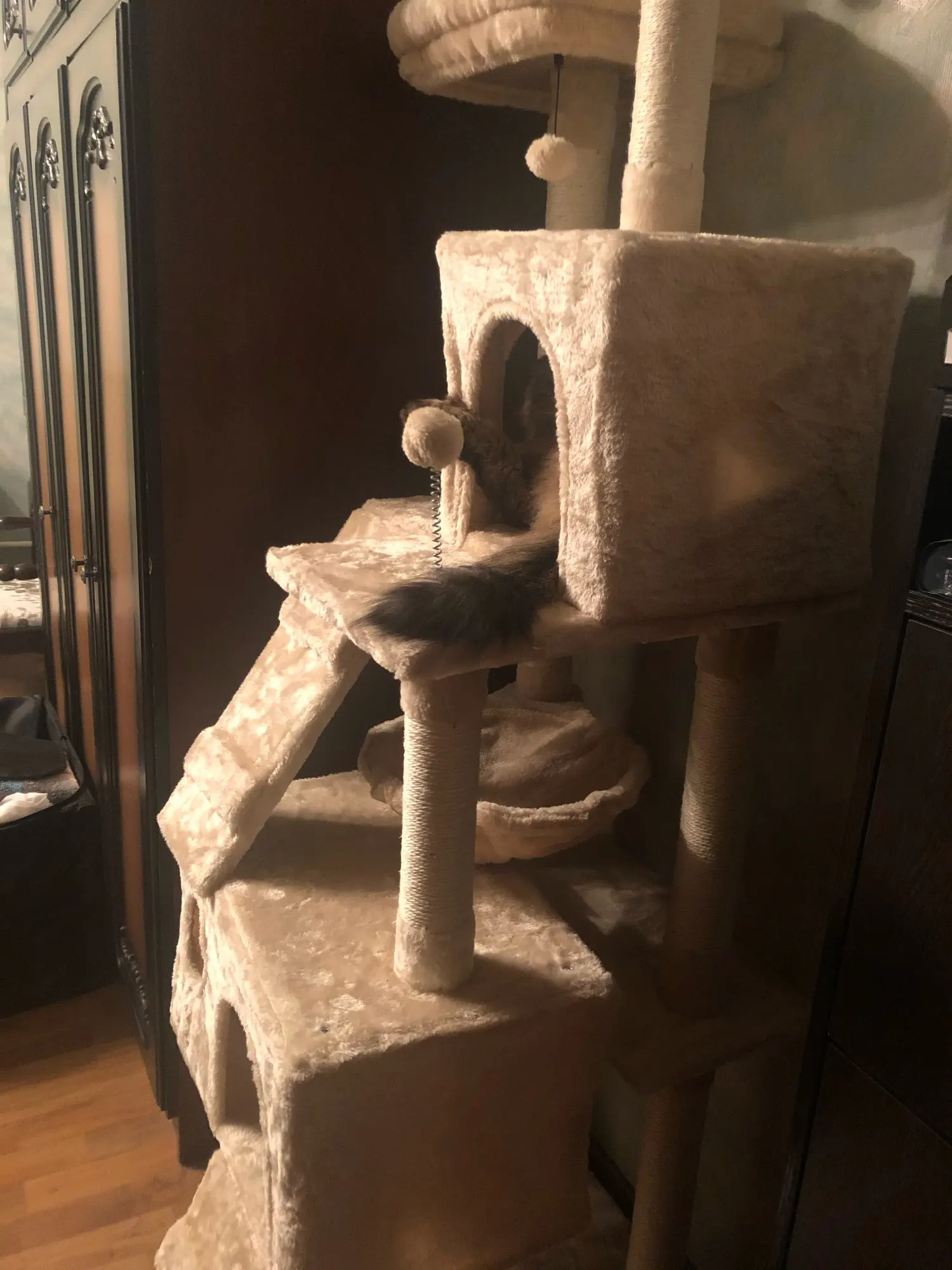 Отличный контакт с продавцом, быстрая доставка, кошачье дерево, как описано и в очень хорошем качестве, никаких проблем с сборкой и самое главное, мой кот любит его!