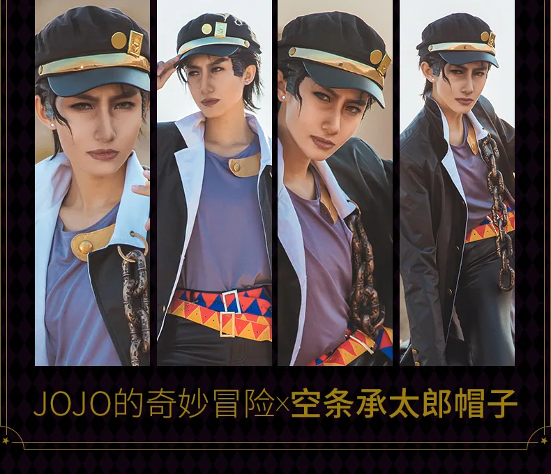 Кепка для косплея дзётаро кудзё из аниме Невероятные приключения Джоджо, армейская фуражка Джозефа в стиле милитари, шапка Джоджо с значками, с анимацией