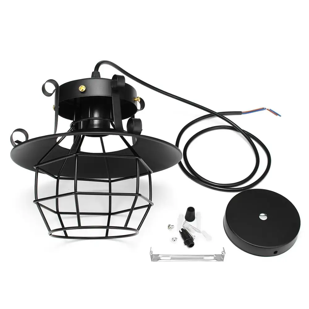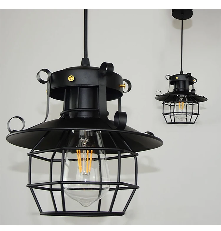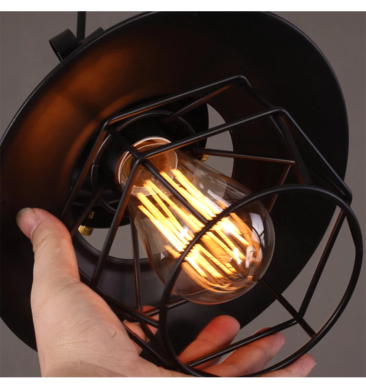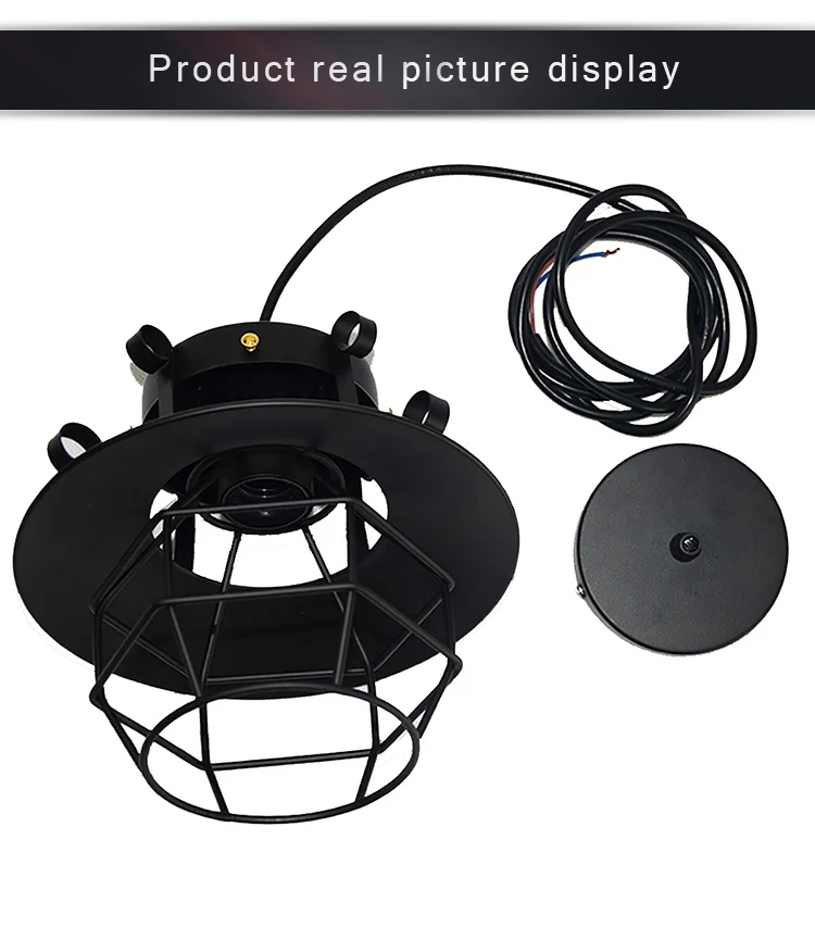 Технические характеристики: 1. Материал: железо 2. Цвет: черный 3. Светильник источник света: 1 * E27 (не входит в комплект) 4. Название продукта: Железная художественная потолочная лампа 5. Средний срок службы: 50000 (часов) 6. Длина кабеля: 100 см (регулируется) 7. Размер абажура: D * H:22*22 см/8,6*8,6" 8. Держатель лампы: диаметр 10 см 9. Стиль: Ретро/Ностальгический 10. Техника: железное искусство, краска 11. Применение: гостиная, столовая, кухня, кабинет, спальня, бар, кофейня и другие места ностальгического стиля