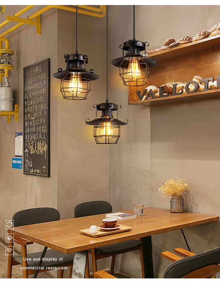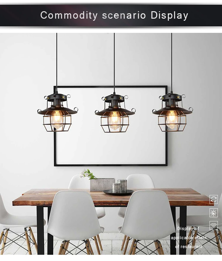 Особенности и преимущества: ● Ретро-дизайн. ● Этот светильник не только один красивый прочный и безопасный подвесной светильник, но и красивое украшение для вашего дома. ● Подходит для любого винта E27 в лампе. ● Светильник с проводом, прочный, энергосберегающий и экологически безопасный. ● Подходит для спальни, гостиной, столовой, бара, гостиничных проектов, кабинетов, складов, залов, гостиничных комнат.