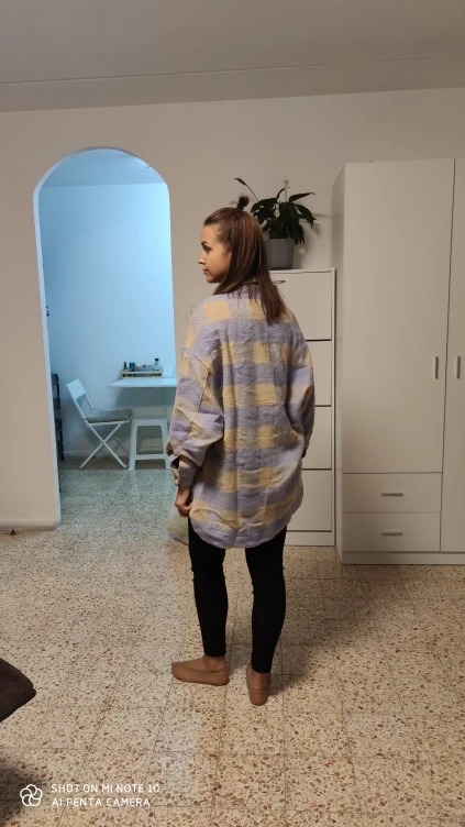 Мягкая, достаточно теплая, без подкладки. На размер 44-46 очень оверсайз. Доставка долгая, больше 60 дней. В целом - довольна, пригодится в следующем сезоне.