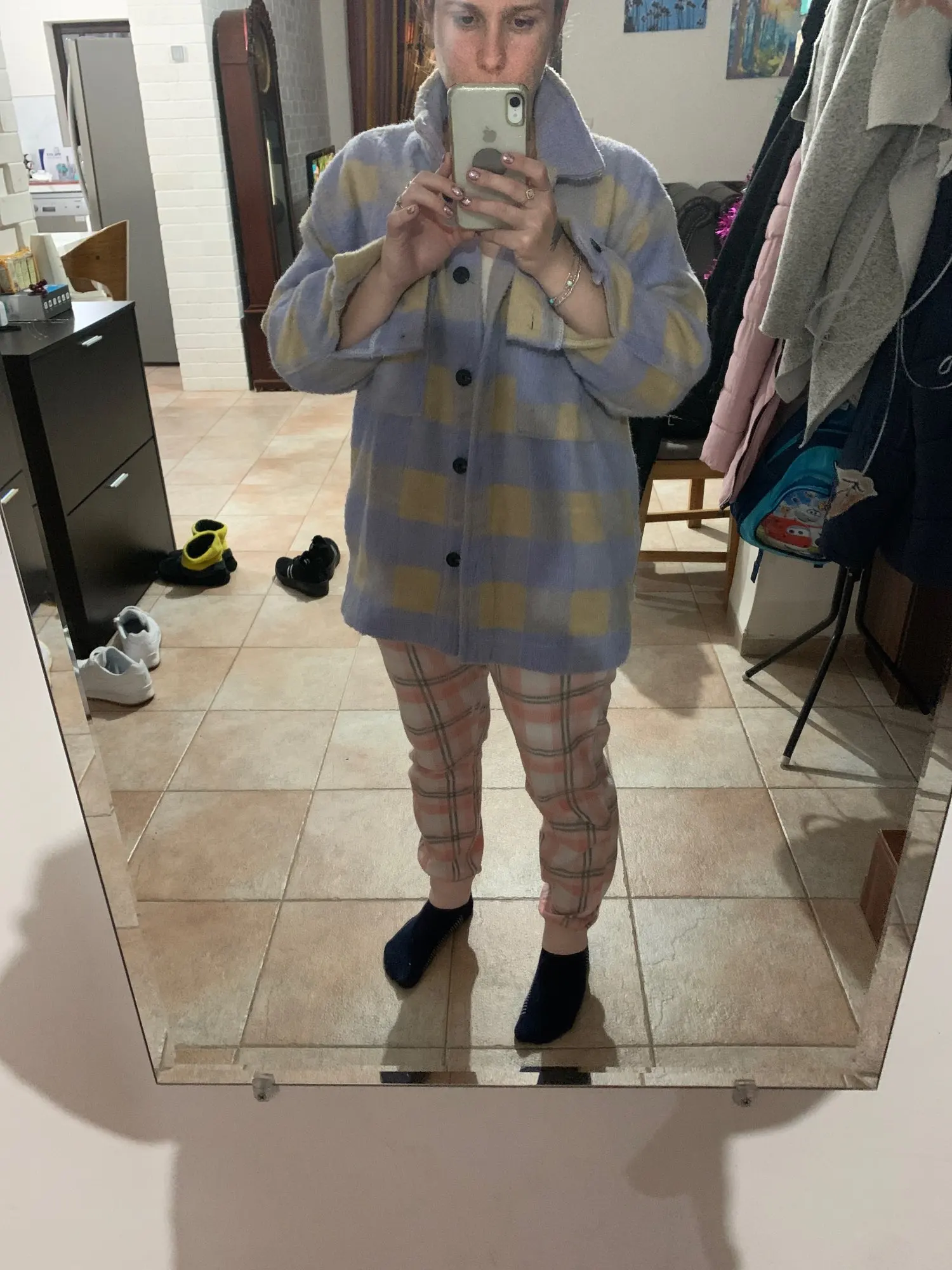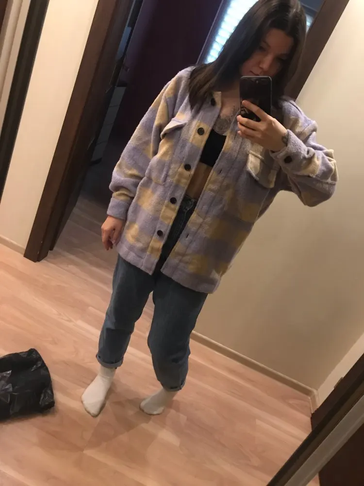 я не знаю что я ожидала от этой рубашки. наверное что она будет выглядеть как на фото, но вот в чем факап, это не совсем так, то есть она один в один но что то не так, наверное что квадратики не оранжевые а коричневые. на ощупь мягонько не воняет ниток больше чем могло бы быть за это баблишко. и да не можешь контролировать бардак на фото замалюй)))