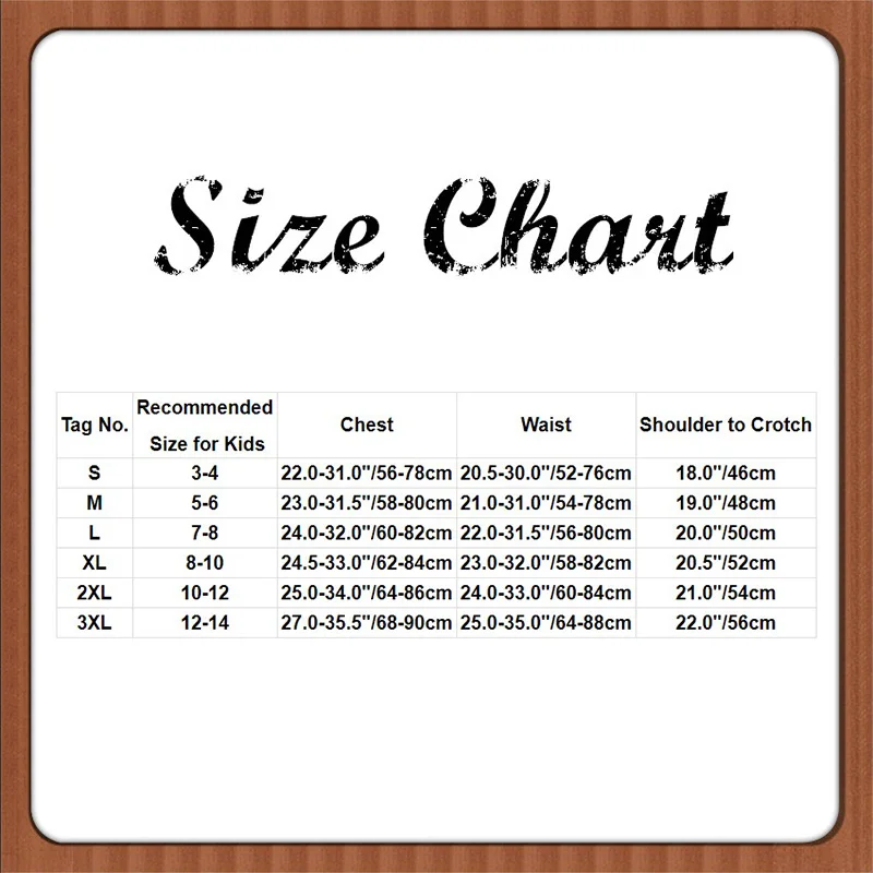 Размеры: 3-14/бирка # S-3XL(Пожалуйста, проверьте фактические измерения, чтобы выбрать правильный размер.)Таблица размеров:Предполагаемый возраст и рост указаны только для справки. Если под ваши замеры подходят два размера, мы рекомендуем выбрать больший размер.(Измерения, содержащиеся в таблице, относятся к товару, а не к телу.)