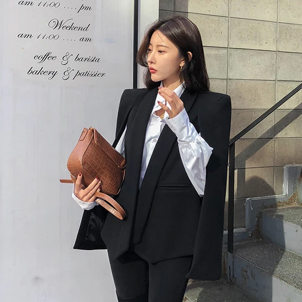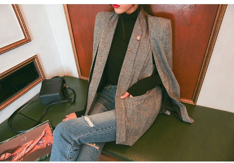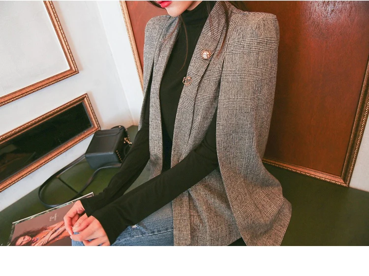 Женский блейзер с длинным рукавом, черный клетчатый блейзер в офисном стиле, 2020