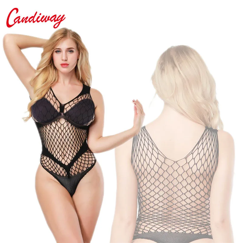 Candiway размера плюс сексуальный черный ажурный эластичный плюшевый Боди Нижнее белье 2XL 3XL