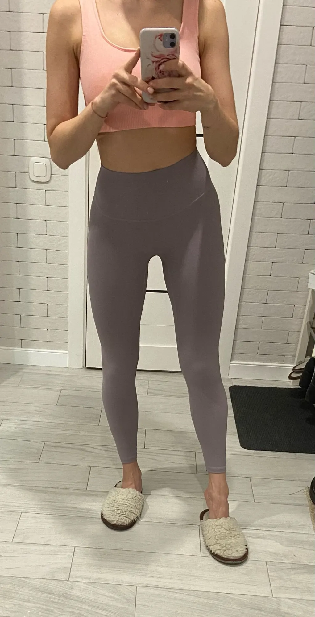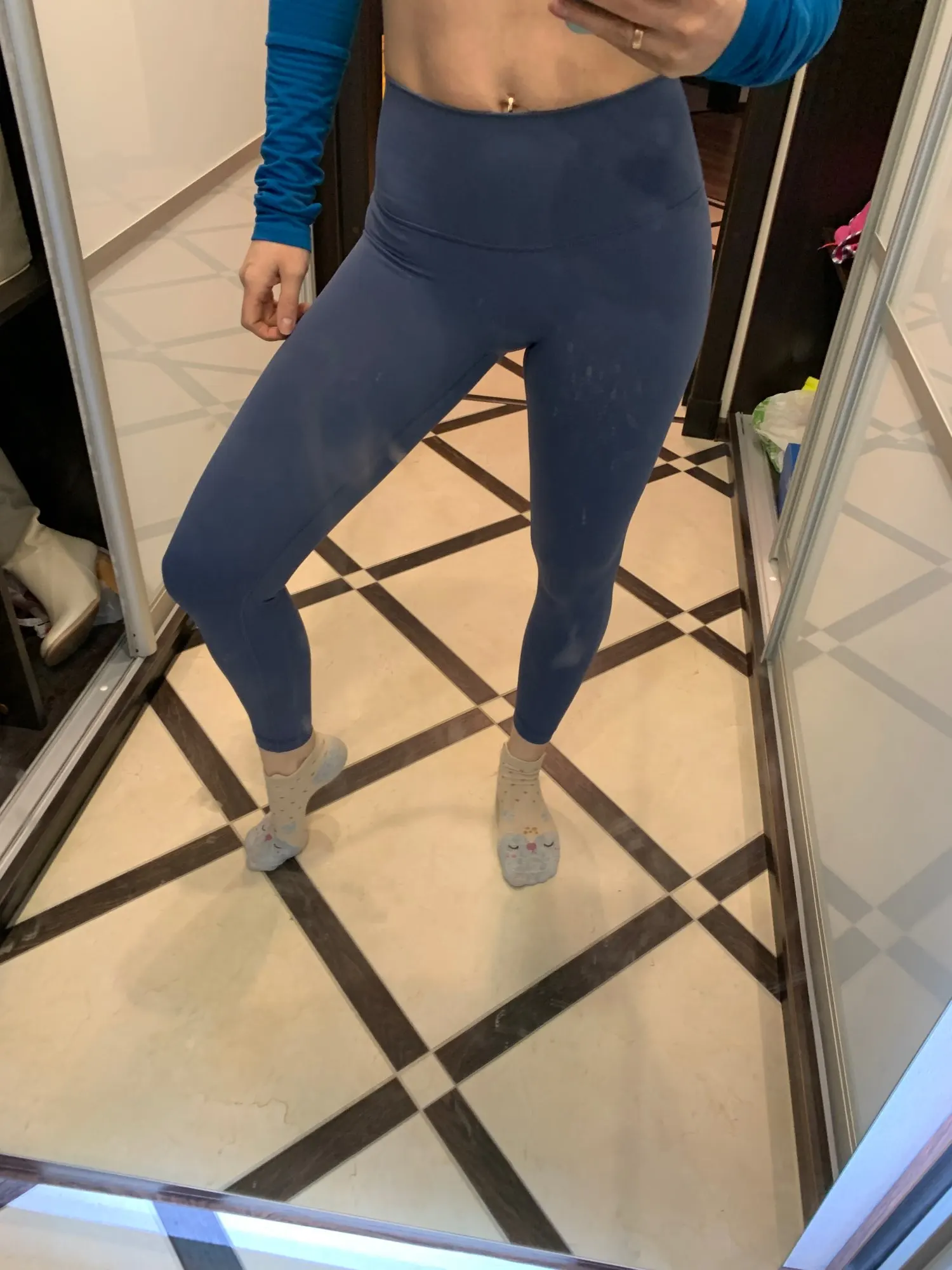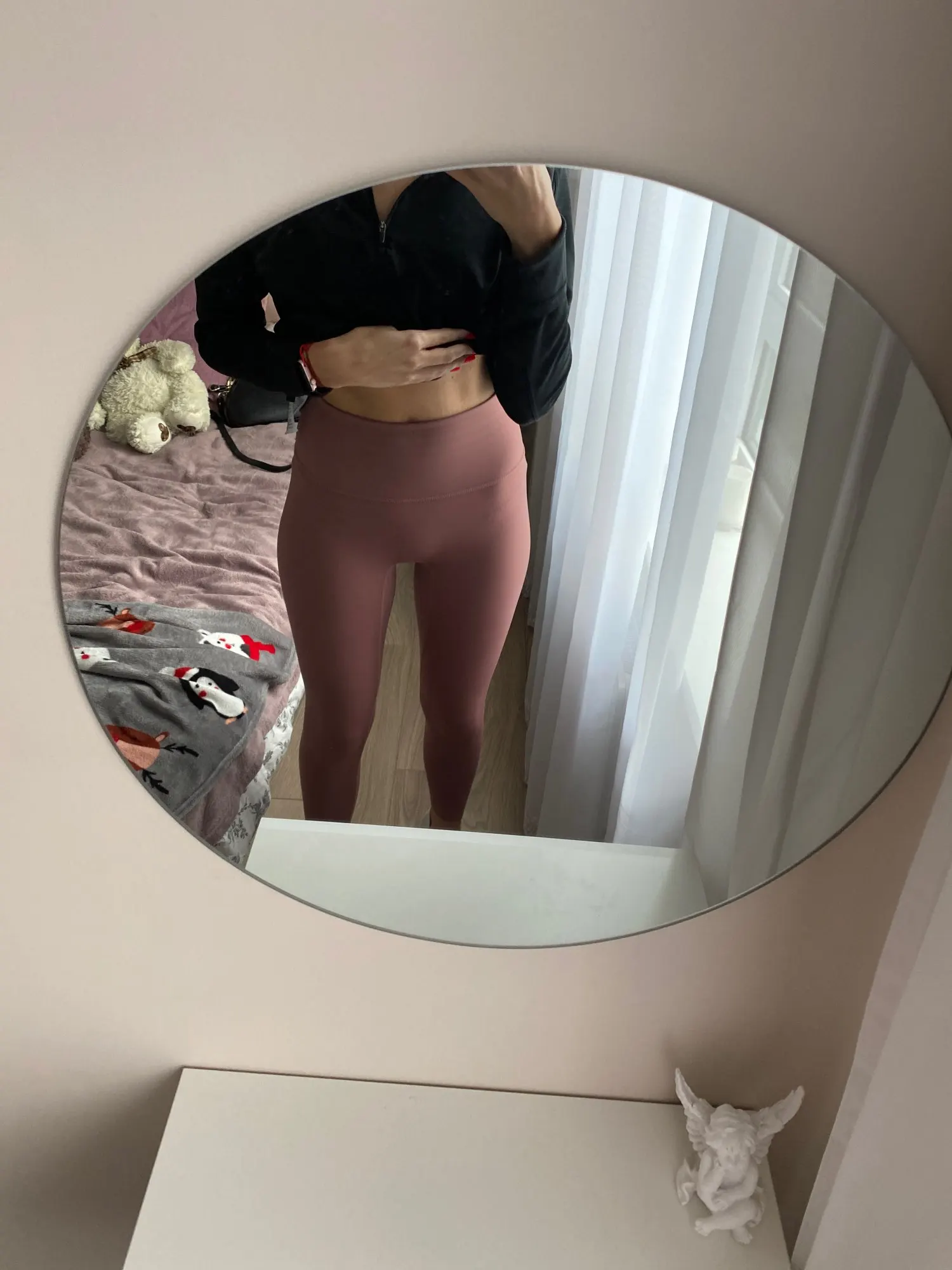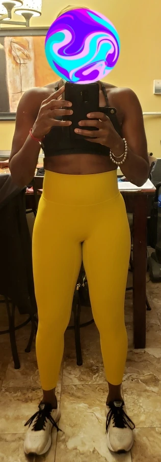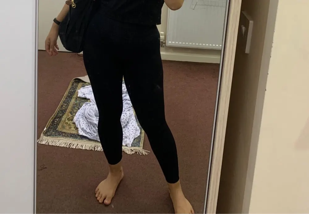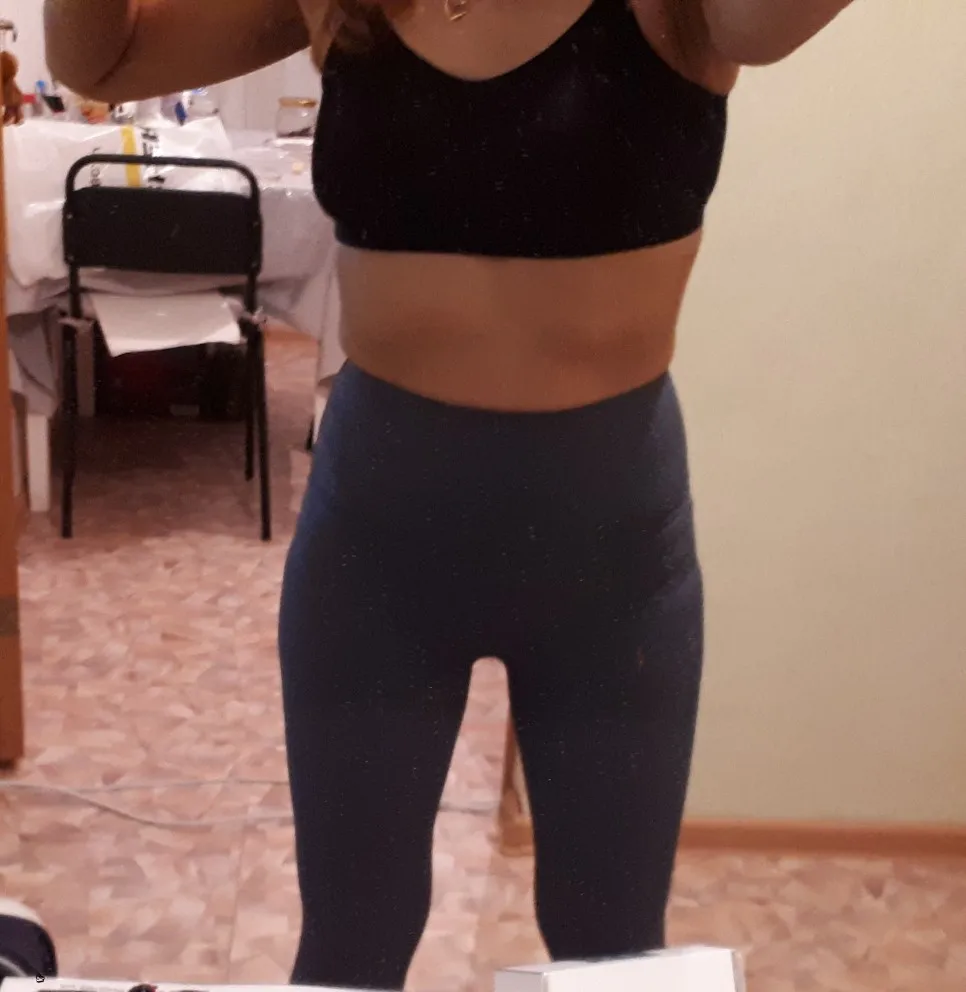 Невероятные леггинсы, точно такие же, как и у lululemon! Длина по щиколотку, 158 см (самый маленький размер), хорошее сжатие вокруг живота.
