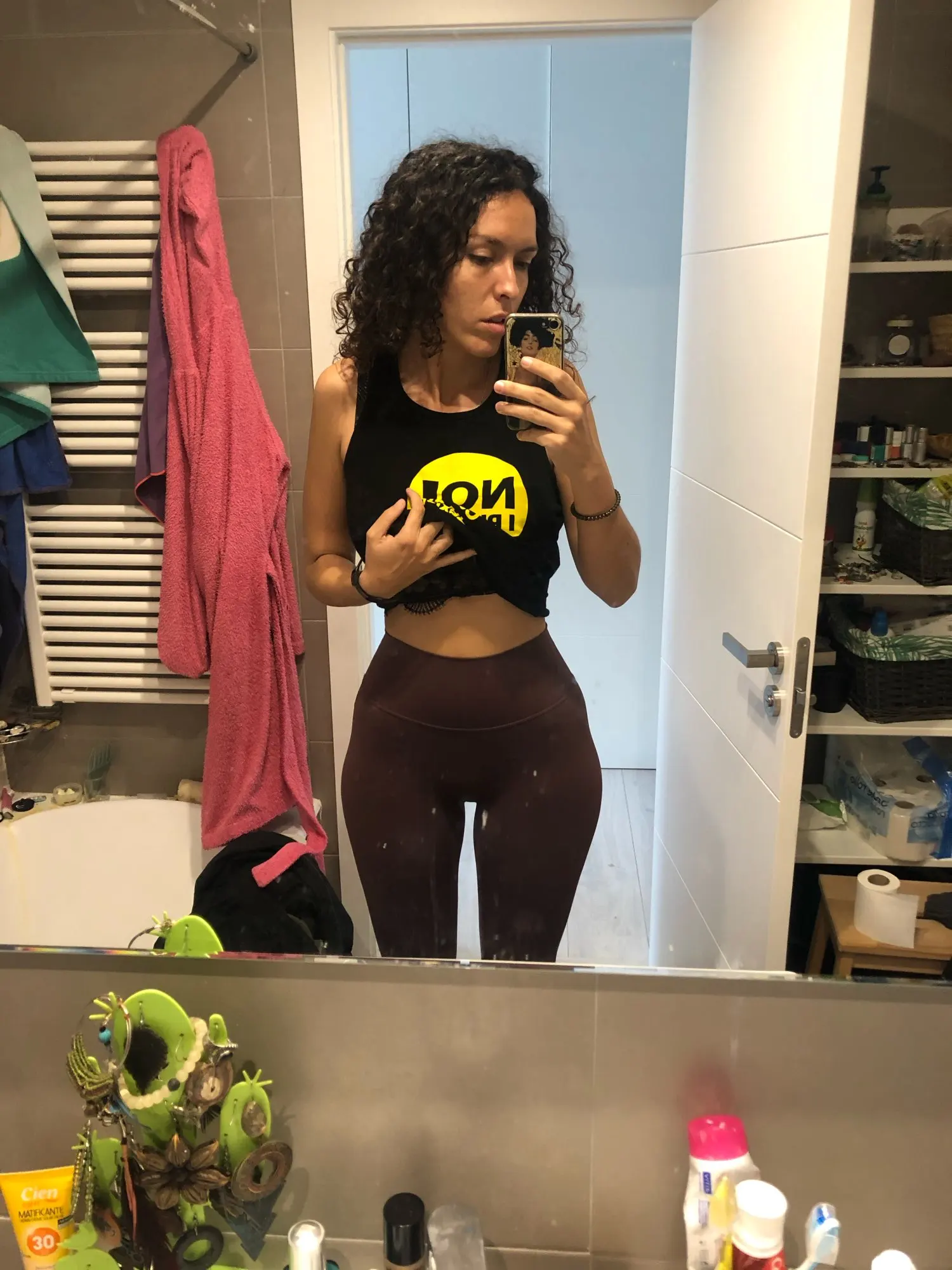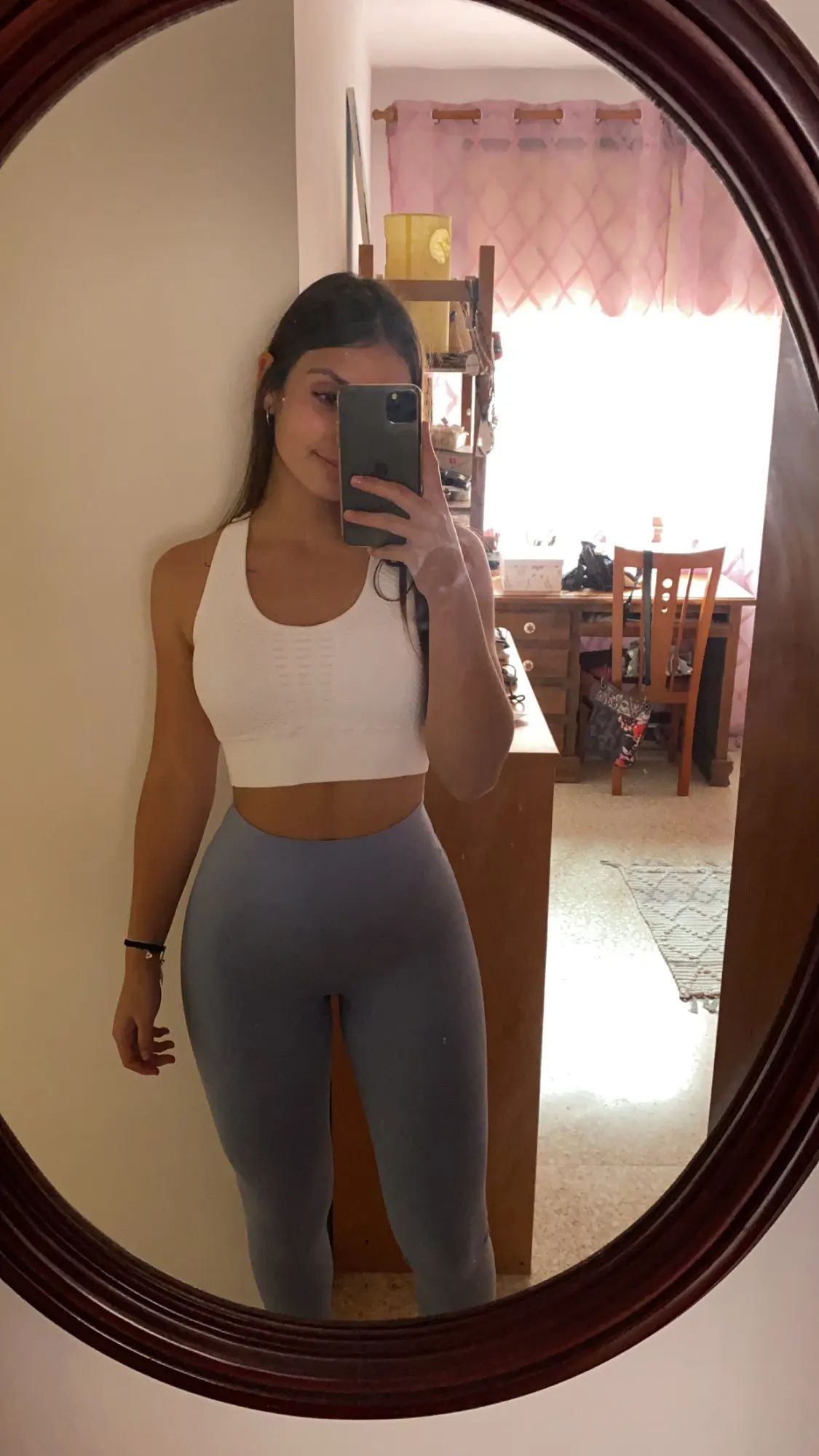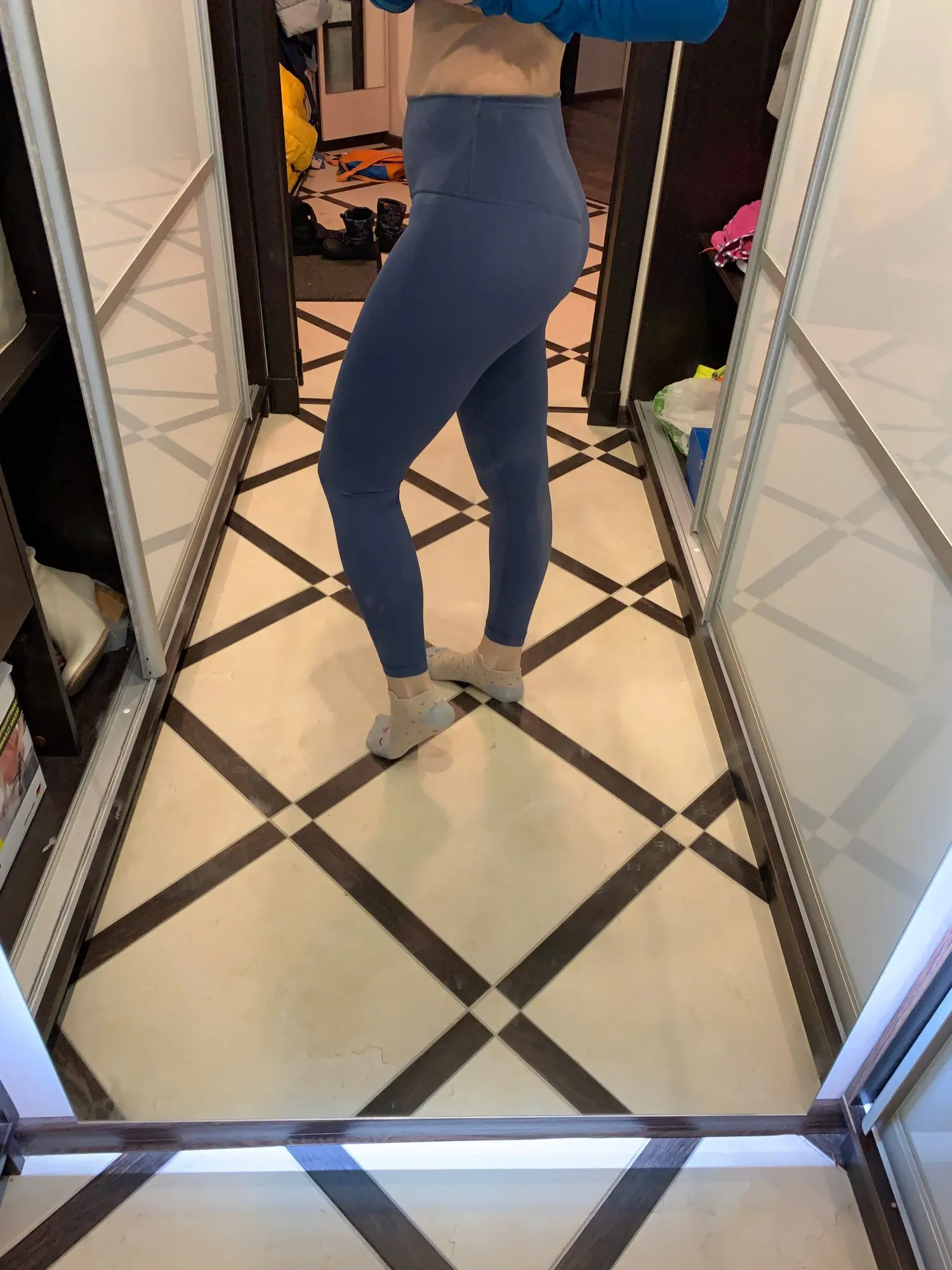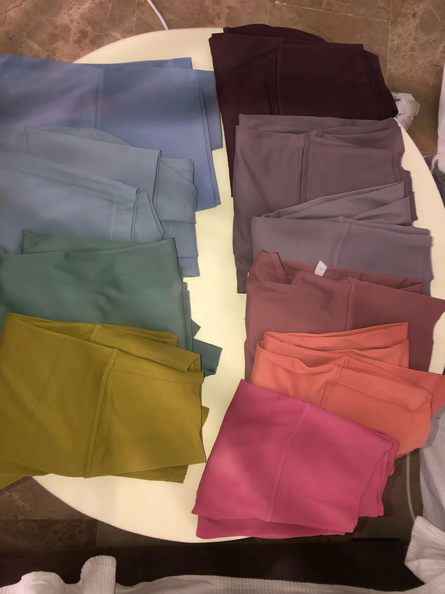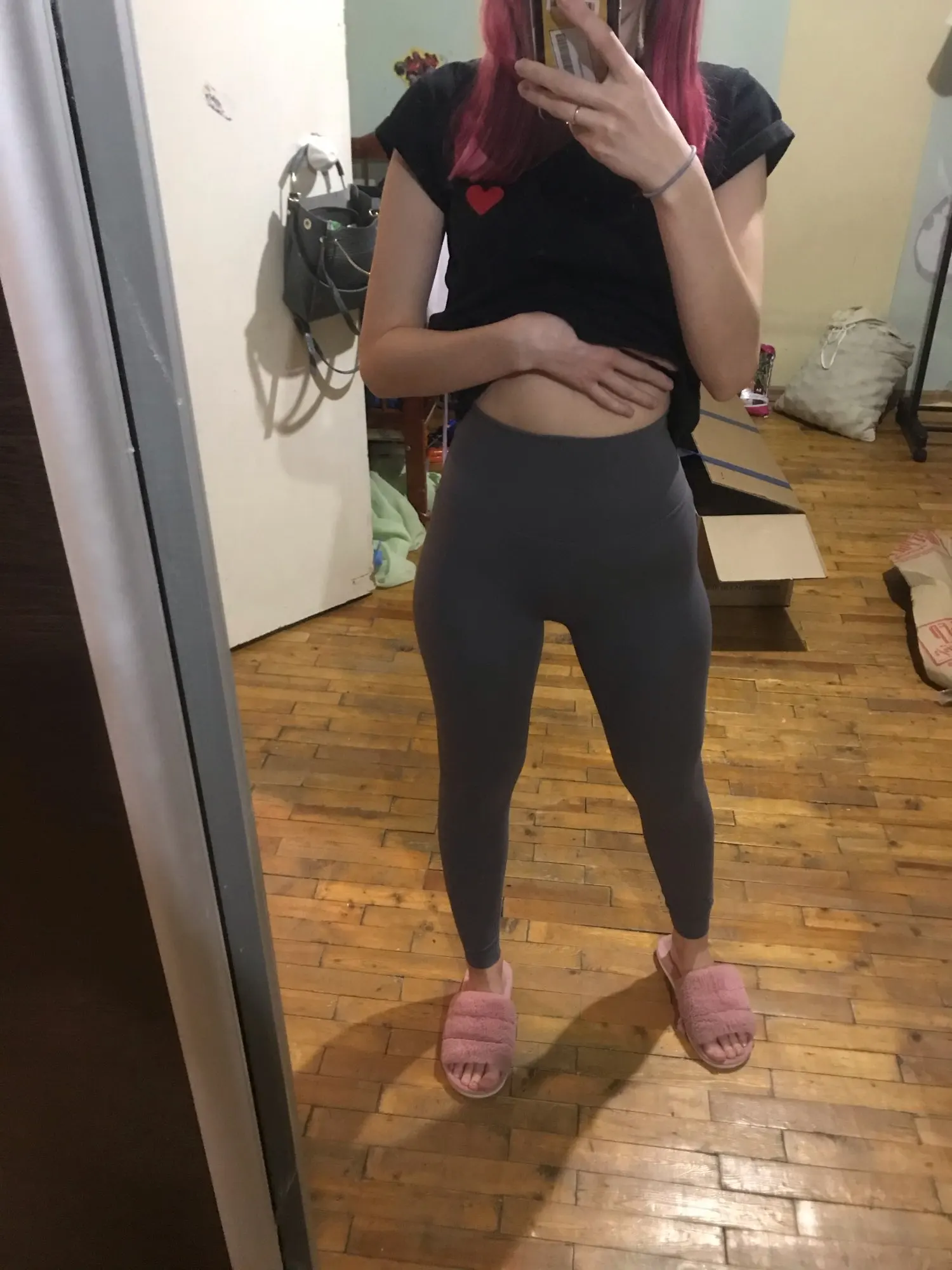 Невероятные леггинсы, точно такие же, как и у lululemon! Длина по щиколотку, 158 см (самый маленький размер), хорошее сжатие вокруг живота.