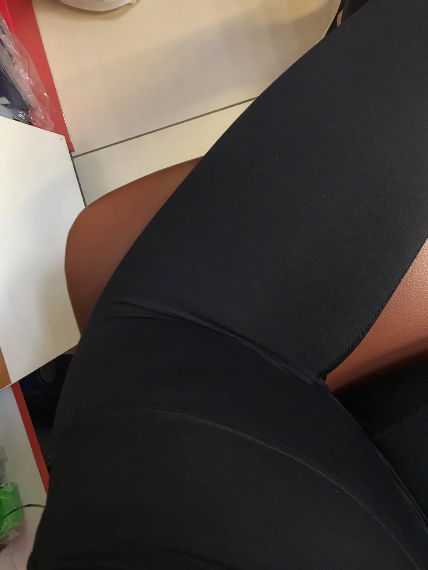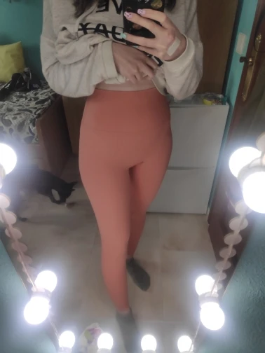 Это так же, как на фото, описание размера правильное, мне очень понравился цвет, он чувствует себя очень мягким, он делает вас очень хорошо выглядеть и не показывает. Я взял Размер L для моих параметров 59 талии и 103 бедра. Я рекомендую это очень хорошие леггинсы.