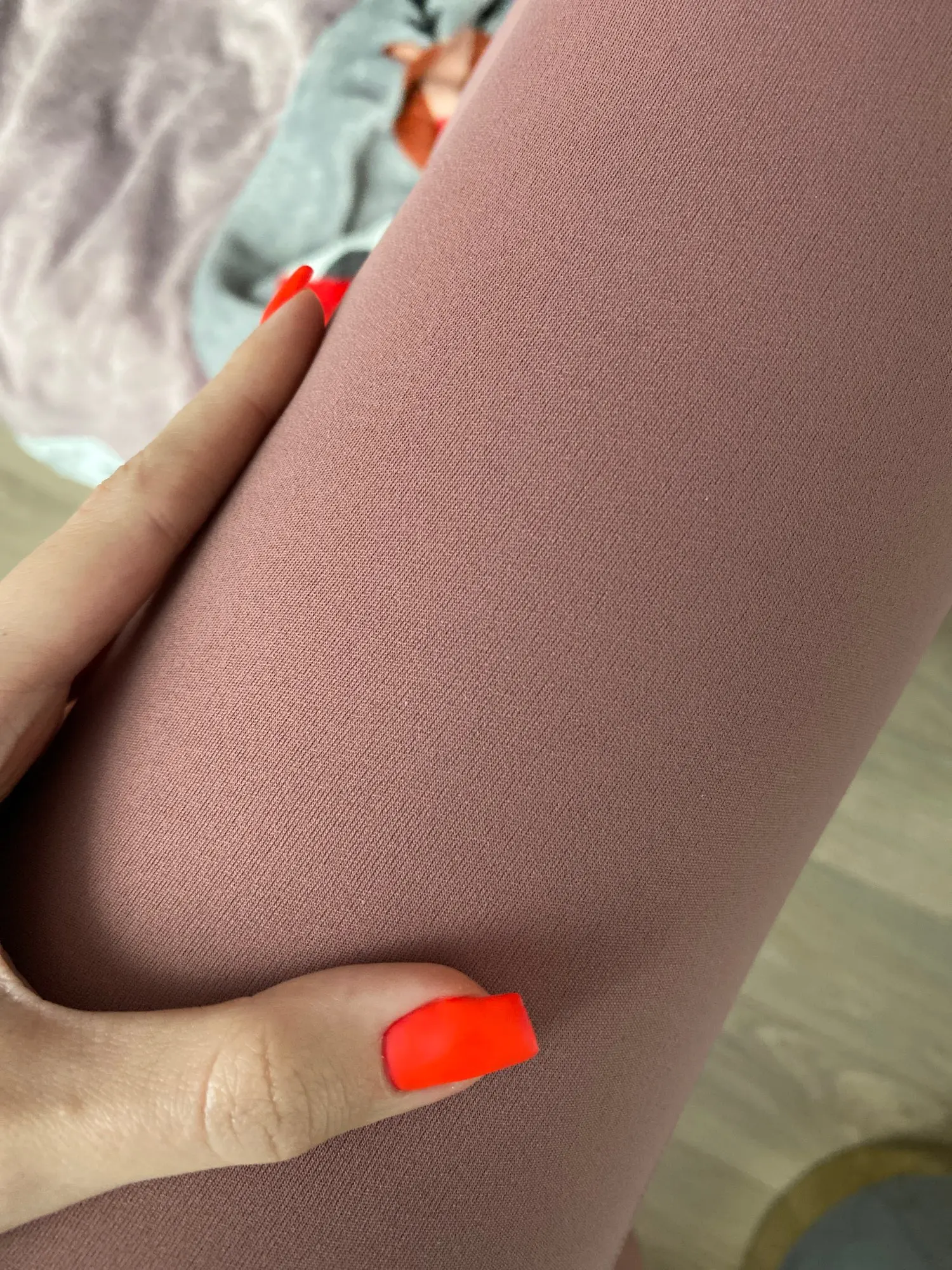 Эти Леггинсы это просто какая-то любовь с первого гляда цвет вообще именно такой какие хотела по размеру точно угадала хорошо что взяла С на свои параметры объем талии 61 и объем бедра 91 :) Пока ещё не стирала. Но материал супер удобно комфортно заниматься спортом уже на растяжку в них ходила и просто спортом спортзале занималась. вообще круто:)