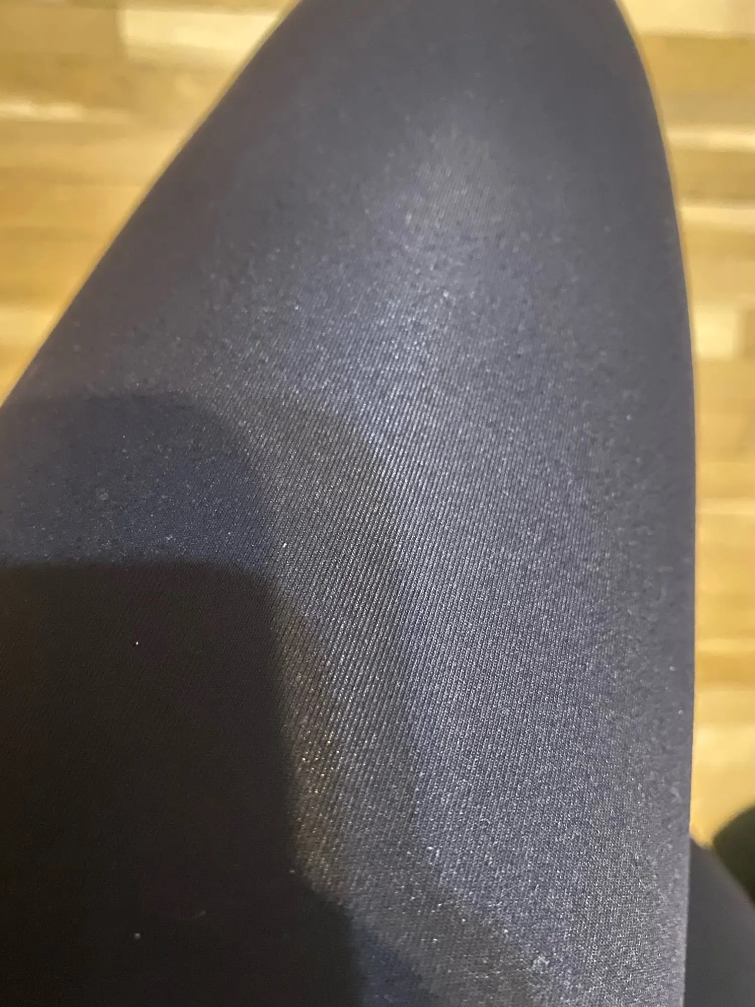 Действительно тонкий, не для холодной погоды. Немного блестящий, пахнет клеем. Но идеально подходит на 175 см 73 кг, не слишком туго на ягодице. Имеет двойной слой/карман сзади. Немного прозрачный