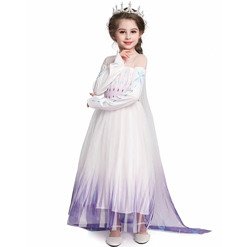 Платье принцессы, белое, с накидкой из мультфильма, Снежная королева, для карнавала, вечеринки