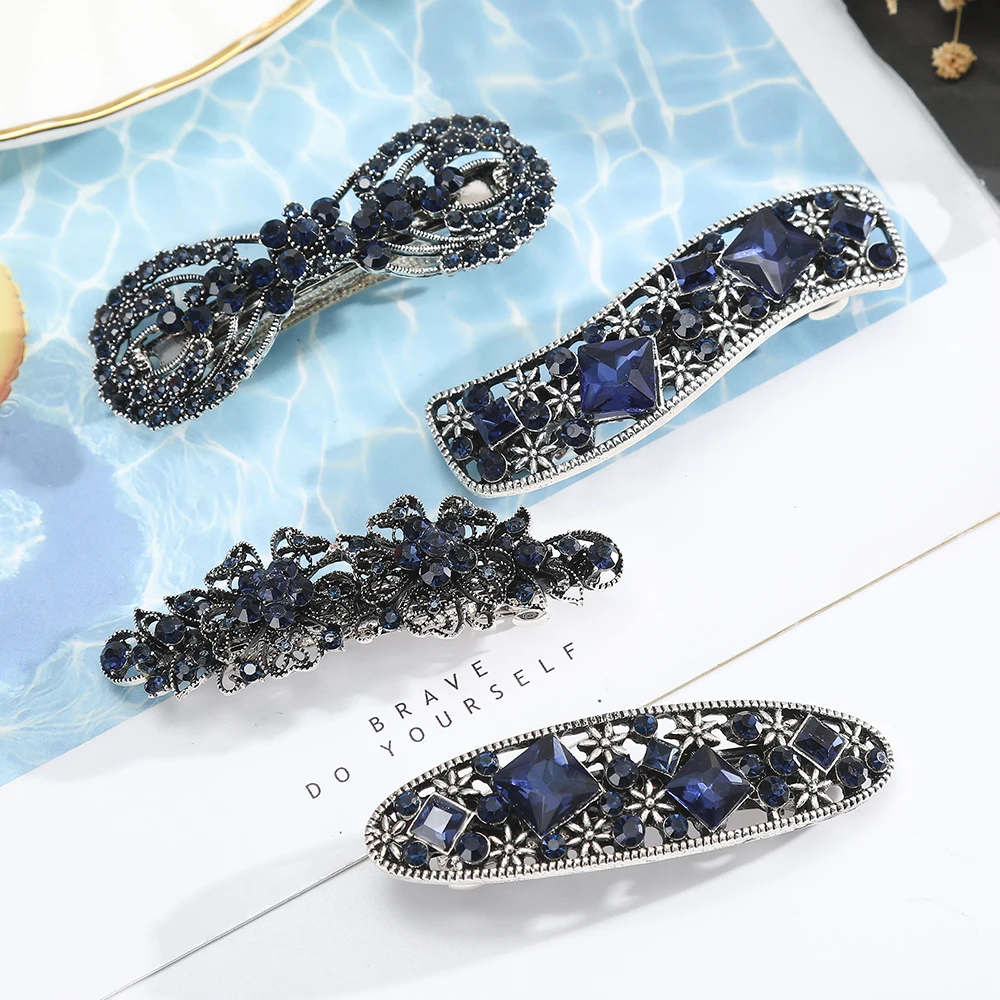 Levao блестящие синие Стразы заколки из сплава заколки с кристаллами Шпилька-бант винтажные полые заколки для волос для женщин аксессуары для волос