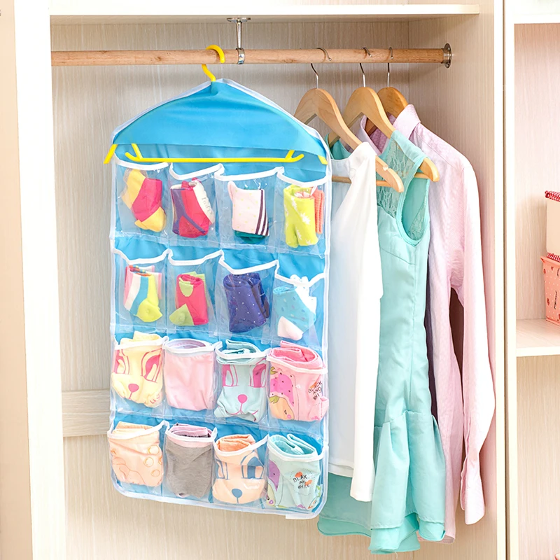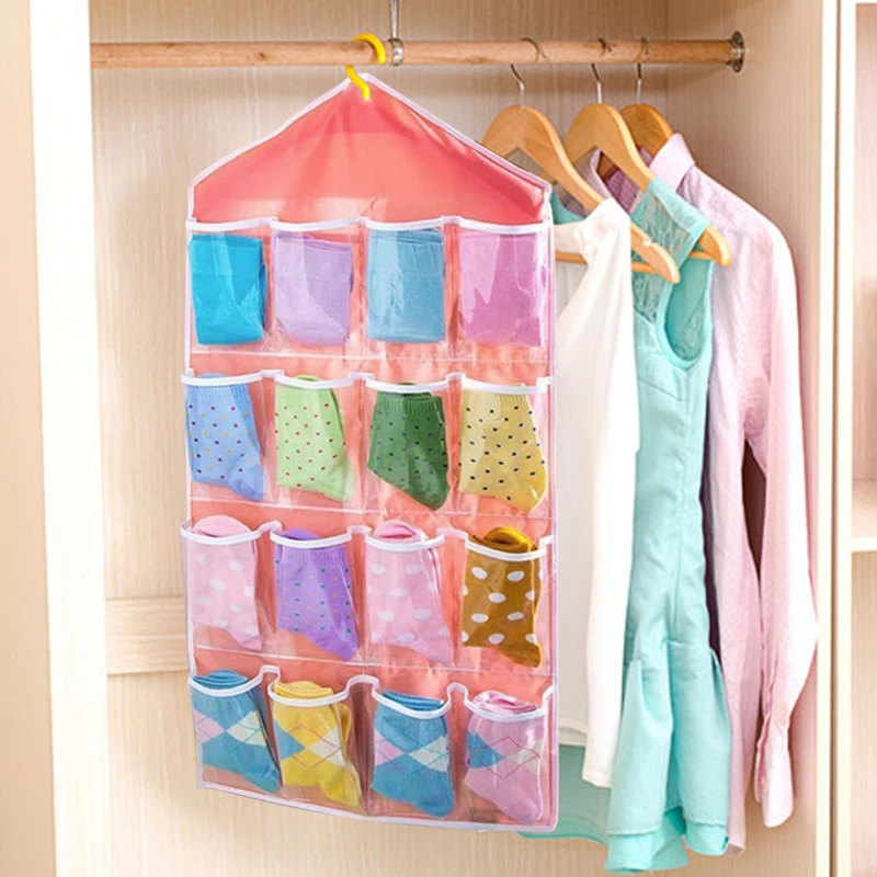 Ящик для хранения Горячая Распродажа, 16 Карманов, прозрачный органайзер для хранения домашних подвесная сумка для инструментов, носков, бюстгальтеров, нижнего белья, Сетчатая Сумка для спальни
