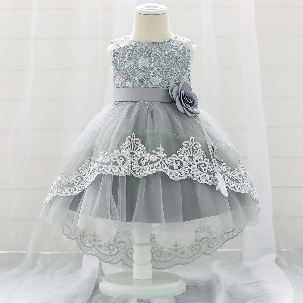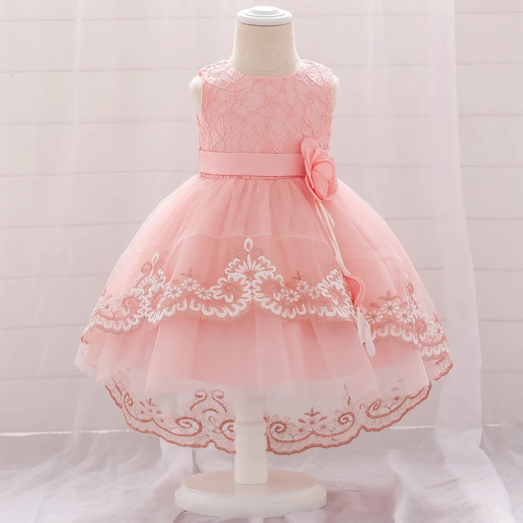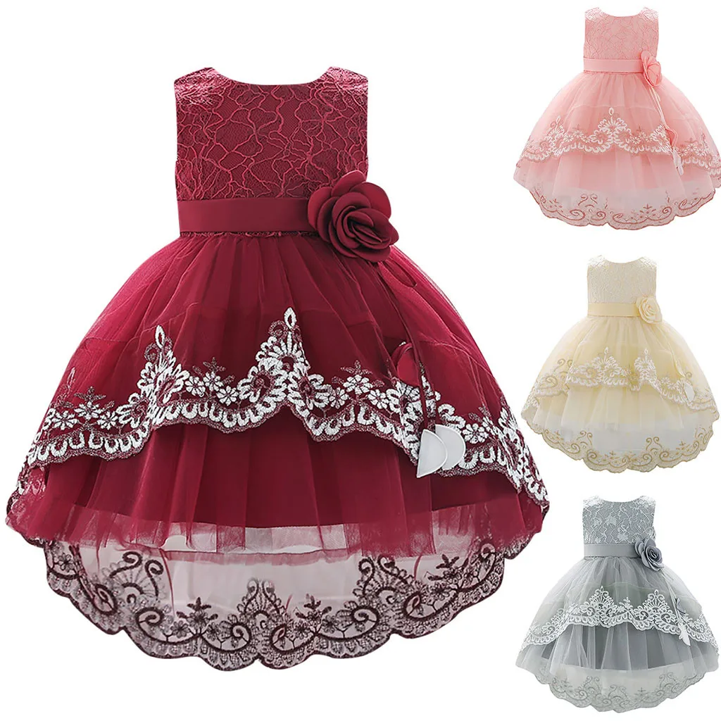 Праздничное платье принцессы с цветочным рисунком для маленьких девочек, платье подружки невесты на день рождения, свадебное платье (0-24 мес.), детское платье без рукавов с круглым вырезом